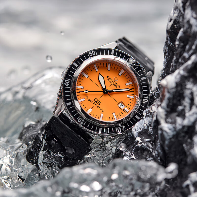 CERTINA 雪铁纳 SUPER PH500M系列 VDST特别版 自动机械男表,德国潜水协会合作款,VDST特别版表底盖,表镜为单面防炫目处理蓝宝石玻璃;43mm大尺寸表壳,表壳厚度14.95mm,整体硬朗帅气。SUPER-LUMINOVA夜光涂层,即使在夜晚也能轻松掌握时间。旋入式表冠设计,防水性能可达50巴(500米)。按压解锁单向旋转表圈,更专业、更安全。NIVACHRON抗磁性摆轮游丝,ETA POWERMATIC 80.611机芯,抗磁性提升10至20倍,不惧温差,不易老化。