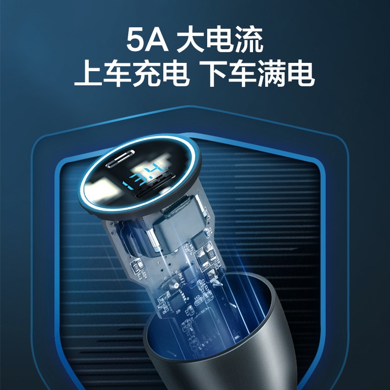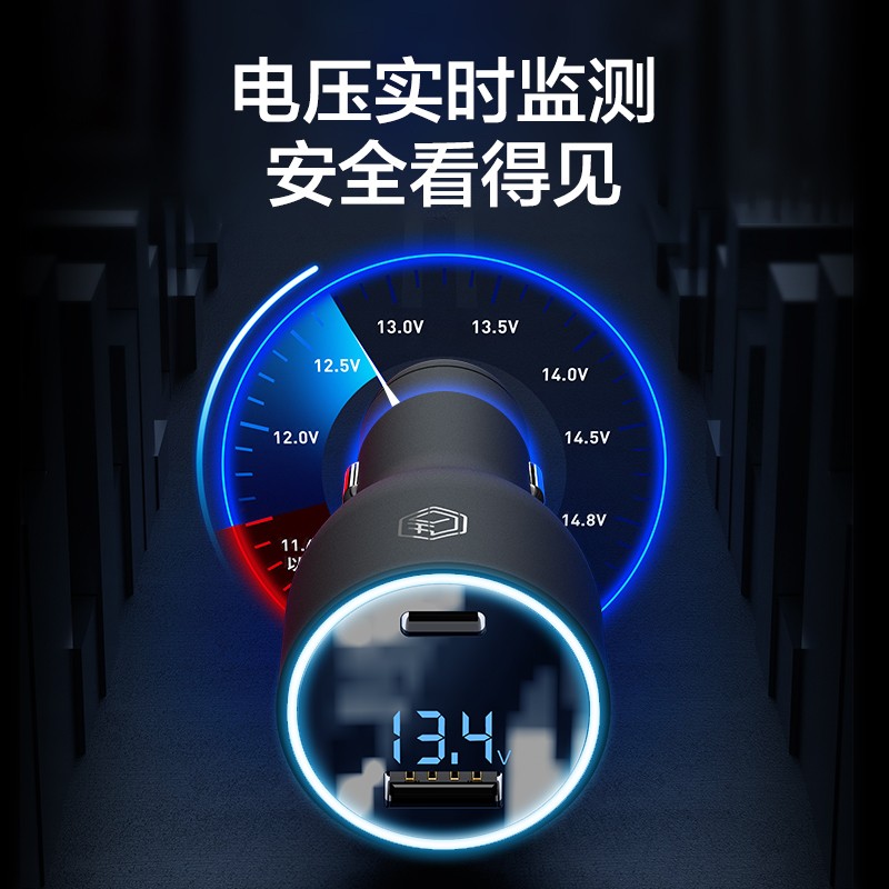 Type-C 100W 大功率输出,5A大电流,短暂行车途中快速补充电量,手机即刻满血复活。配备USB-A和USB-C 两个输出接口双口118W 输出,满足主副驾同时充电需求,快充无需等待。LED 数显,实时监测电压,时刻保护设备安全。支持PPS、PD3.0、QC3.0、AFC、FCP等多种快充协议,苹果、安卓及其他部分电子设备都能充。内置智能芯片,自动匹配设备所需电流,充电更放心。
