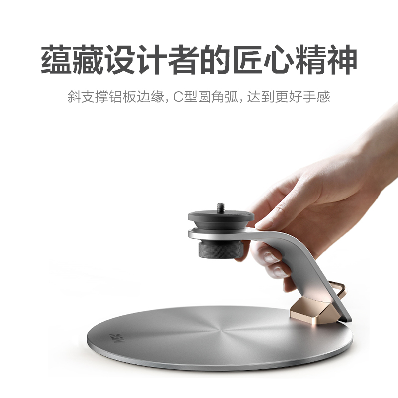 这款投影仪支架底部设有防滑硅胶垫,可增加稳定性。斜撑厚度达8mm,能够承受更大压力。硅胶防刮蹭,能够有效过渡机震,防止机器底部划伤。底面+侧边采用拉丝纹工艺,提升使用质感。1/4标准螺丝,不仅适配市面上绝大多数投影仪,还能适用于单反、微单。S形穿插结构,有效管理电源线,杜绝桌面杂乱。可全景旋转360°,俯仰12°可调。