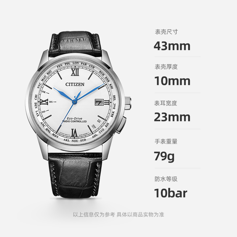 西铁城推出的这款男士手表,采用经典白色表盘,数字刻度搭配蓝色指针显示,方便你查看时间。皮质表带配打孔扣,商务气息十足,佩戴舒适且方便脱戴。具有光动能,不用担心耗电问题。矿物质强化玻璃镜面,防刮耐磨。具有生活防水功能,满足您的日常佩戴需求。