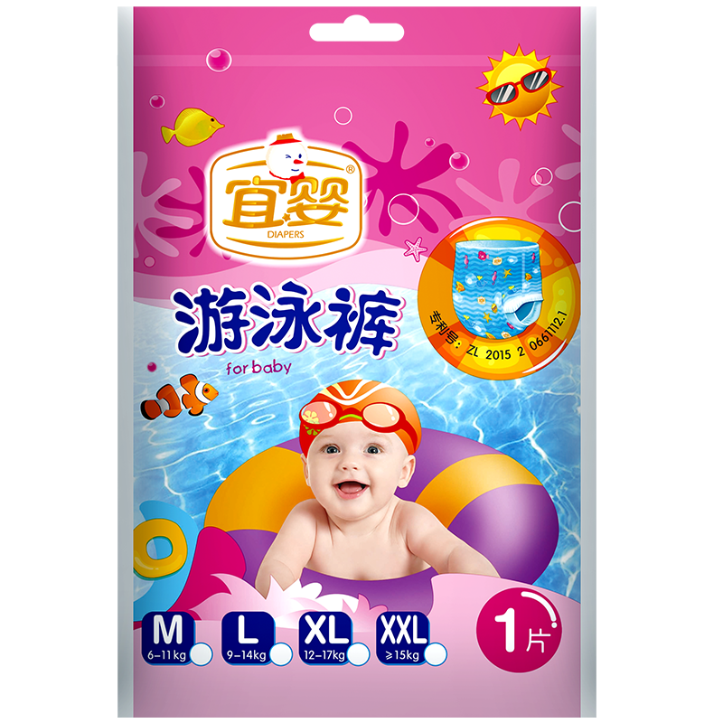 这款YIYING宜婴婴儿一次性游泳裤采用全卡通柔软拒水无纺布底膜,透气外层微孔设计,防水又透气,柔软弹性材料精致竖纹纺织而成,可在水中分散压力,不紧勒宝宝小肚肚,外有防水层,内有吸水亲肤材质,入水后轻巧不膨胀。