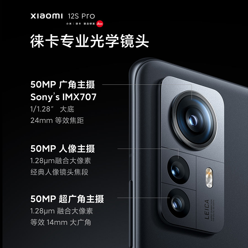 小米12s Pro的机身背部同样有白色的徕卡 LEICA Logo,机身的宽度控制在74.6mm,配备了黑色、紫色、原野绿(素皮)以及白色四种配色。