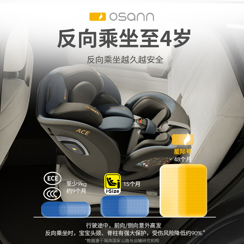 支持360°旋转。一手抱娃,一手拨动把手旋转,非常轻松。旋转时可以在90°和270°卡档悬停,真正做到宝宝上下车方便。
