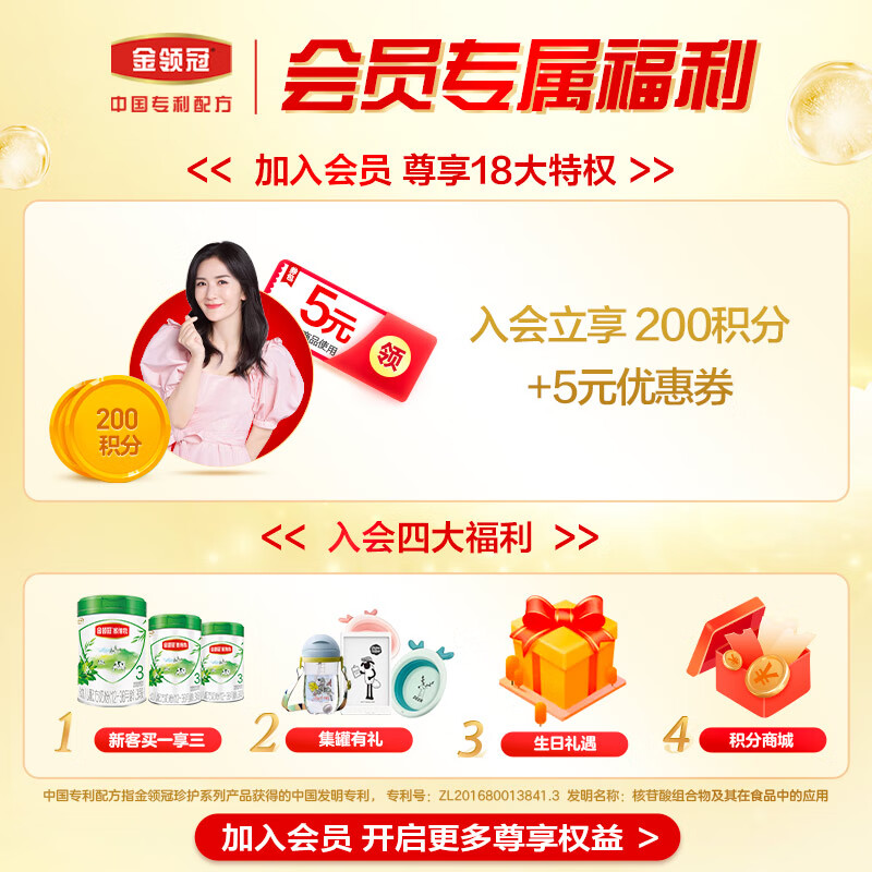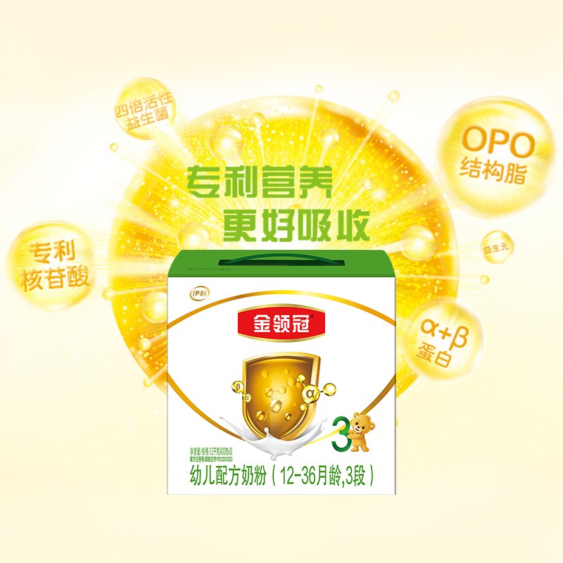 伊利是知名的国产奶粉企业,旗下的奶粉产品线比较丰富,金领冠是伊利销量top1的奶粉系列,奶源选自“黄金奶源带”新西兰,臻选1%专属牧场新鲜生牛乳,原奶经过伊利标准化、集约化的生产加工,转化为营养优质的奶粉。伊利金领冠以中国母乳为黄金标准,添加α+β专利蛋白,促进营养吸收,提高免疫力。含有的BID是来源于美国杜邦丹尼斯克的乳双歧杆菌和丹麦汉森的动物双歧杆菌,可以促进宝宝肠道健康。DHA、ARA和胆碱,有助于宝宝脑部发育,符合中国宝宝营养需求。