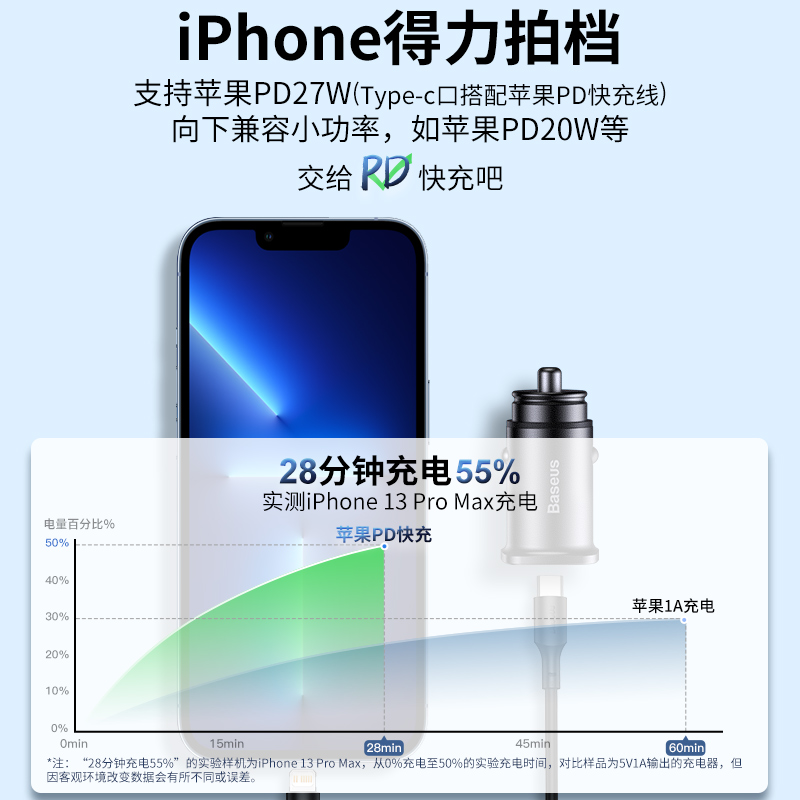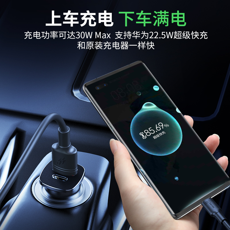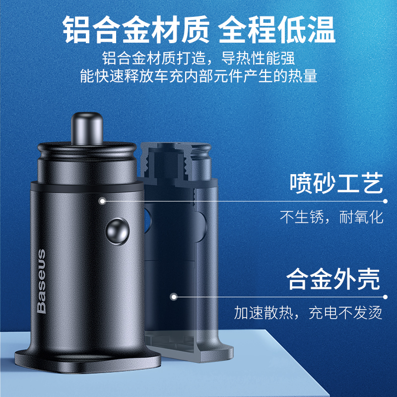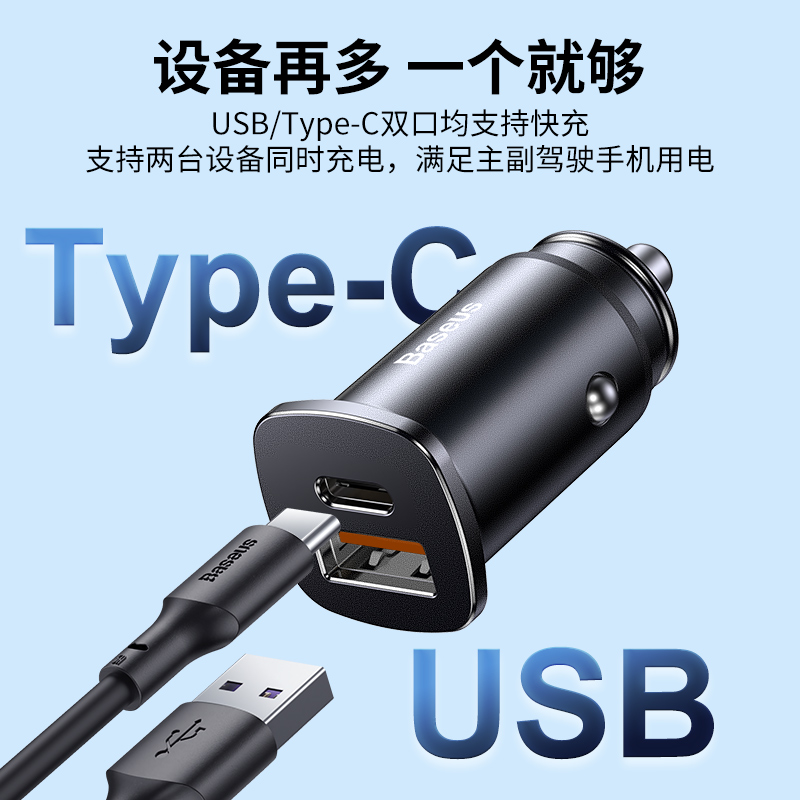 倍思车载充电器,typeC口与usb口均支持快充协议,支持PD3.0、QC4.0+、华为SCP、MTKPE、三星AFC等主流快充。充电功率可达30W和原装充电器一样快,仅高48mm节省车内空间,铝合金一体成型,加强两侧防滑弹片,接触灵敏不脱落。内置过流、过压、过冲、过热、短路等多重安全防护保护,获得CE/PCC/ROHS机构认证。