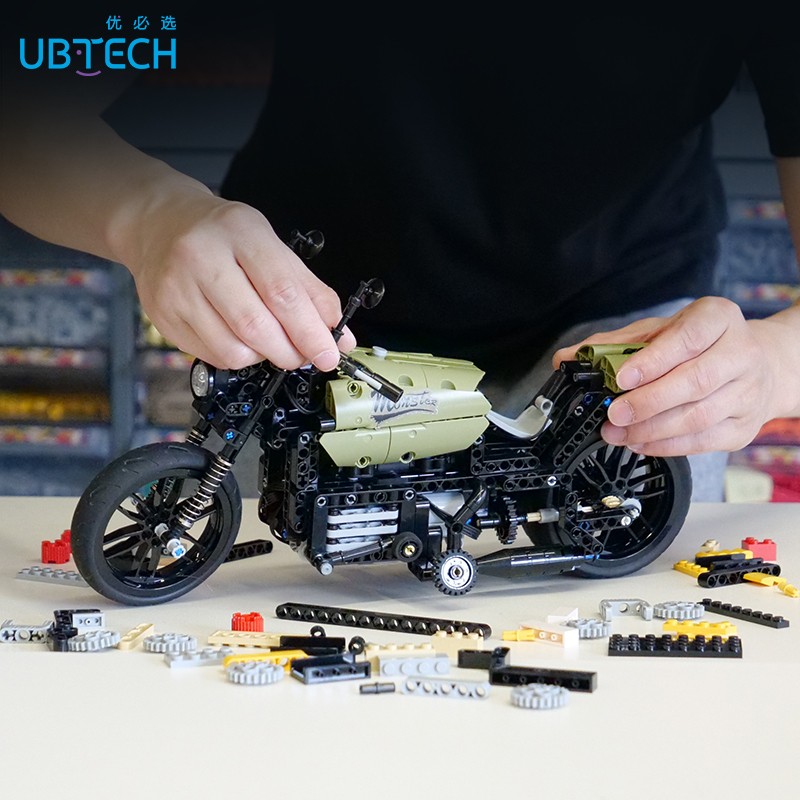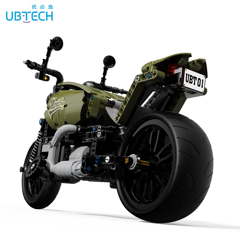 RKL202 智能积木机器人硬核还原机车经典,酷黑+军绿,配色大气,再加上肌肉线条,更让人感到机车制霸街头的氛围。内部还原机械联动原理,配置高性能电机,大扭矩2.4Kgf.cm,高转速 1200转/min。支持APP遥控,APP内置3D图纸,分步搭建360°旋转,拼搭更直观。配有440+PCS零件。