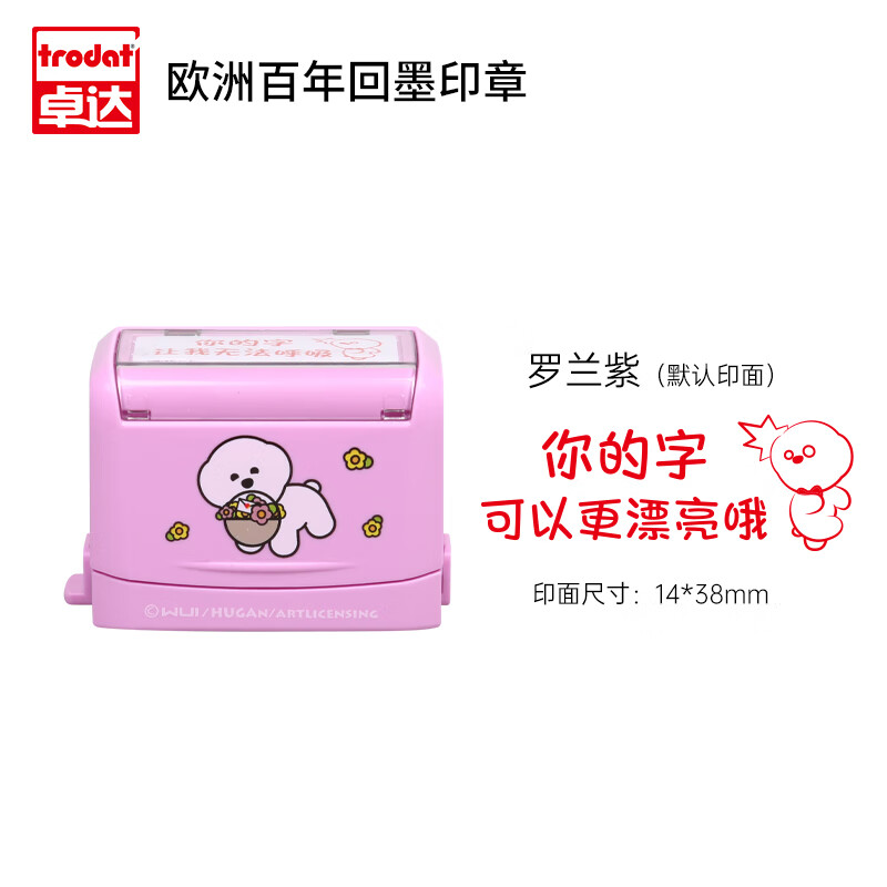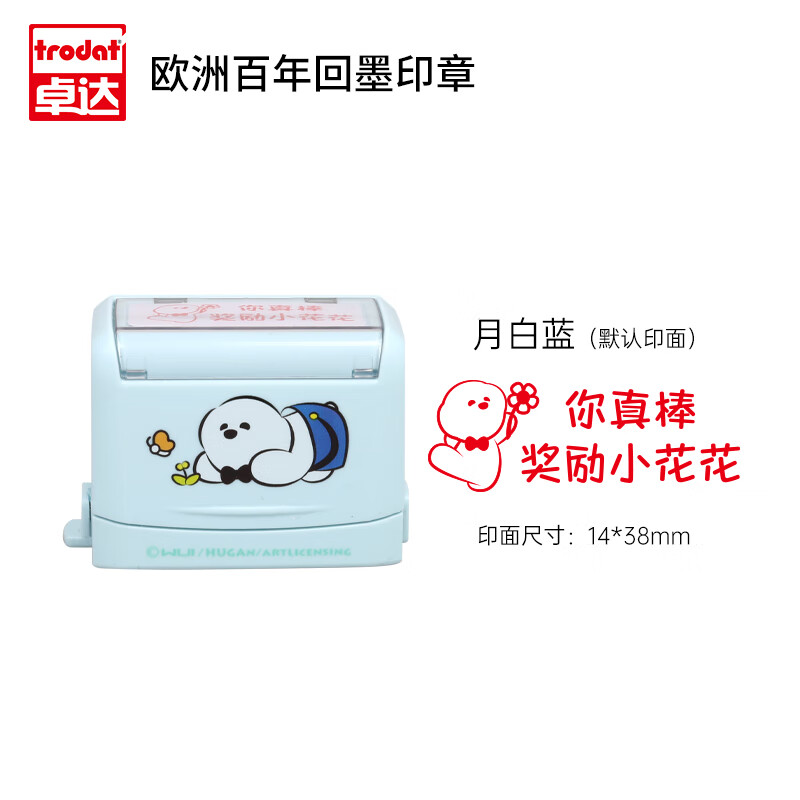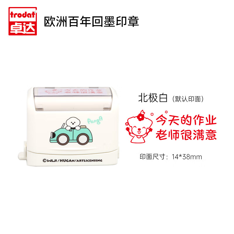 卓达 DY3911S 小白狗联名款 鼓励回墨印章可用于批改作业鼓励学习用、学习计划鼓励用、做家务鼓励用;采用可视透明窗口设计,开盖即印,帮助正面引导孩子行为;自带专用印台,可盖印1000+,盖印清晰萌趣可爱~
