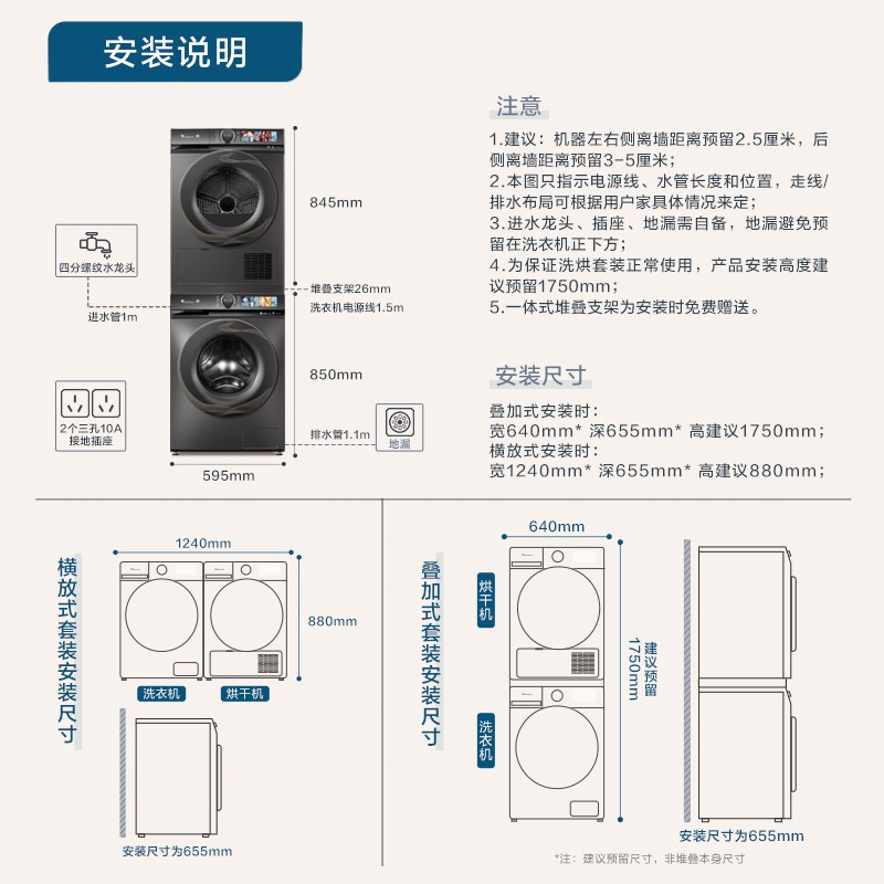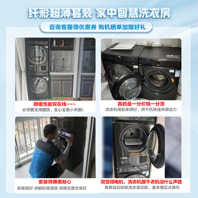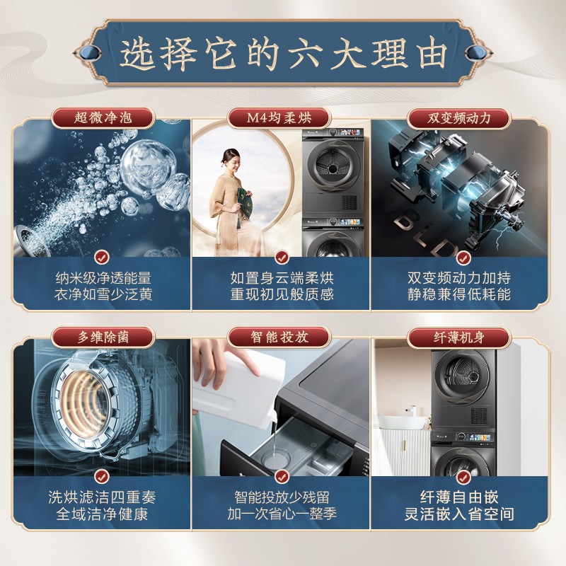 LittleSwan 小天鹅 纤彩系列 TG100S85+TH100HS85 热泵式洗烘套装 KiraKira彩装机,M4匀柔烘,双变频电机,超微净泡,多维除菌,纤薄自由嵌