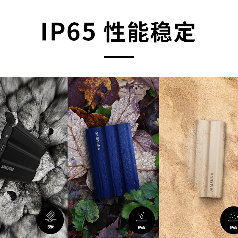 产品重量约98g,采用USB3.2 Gen2和PCle NVMe,实现了 1050MB/s与1000MB/s的飙升连续读/写速度,可直接在硬盘上实现低 延迟的编辑,带有动态热防护装置的橡胶材质外壳以避免温度过热,即便是大存储,也能保持稳定的性能。IP65防水防尘/防摔,双USB 3.2 Gen.2 (10Gbps)接口。