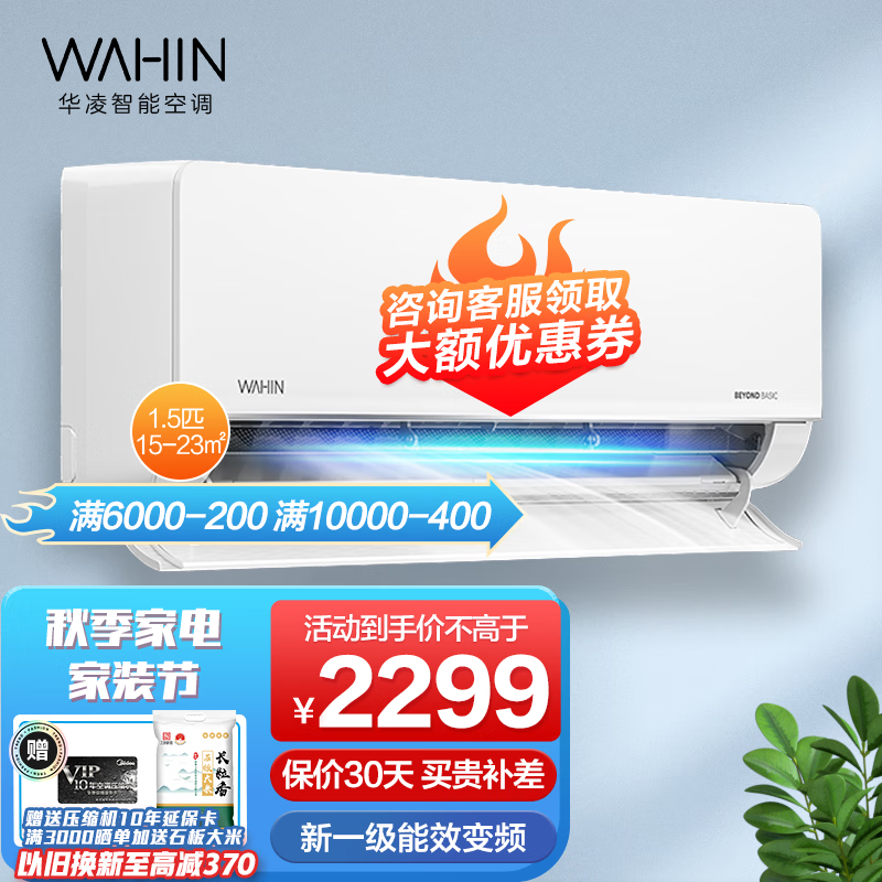 华凌N8HL1壁挂式空调,包括1匹和1.5匹两个规格,主打大导风板功能,出风更广送风更远,同时支持一键防直吹功能;搭载宽温度工作核心器件,支持-32℃低温制热和55℃高温制冷;搭载第四代自清洁技术,深度清洁蒸发器翅片;采用R32冷媒,APF值为5.29,符合新一级能效标准。