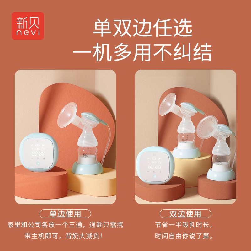 新贝(ncvi)这款单边电动吸奶器,设置5档泌乳和9档吸乳模式,可根据自身需求自由调节;同时高频按摩刺激泌乳,缓和有力规律吸乳,促进顺畅出奶。防逆流设置,避免奶水回流导致主机损坏和二次污染。主机小巧轻便,搭配直吸式储奶袋,便于出门背奶。