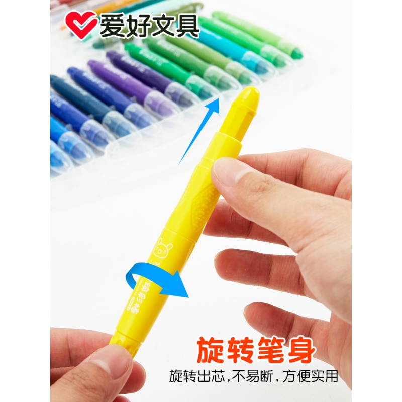 AIHAO 爱好 68081 水溶性旋转焕彩棒 36色,色彩鲜艳涂写顺滑,旋转出芯不脏手,笔触细腻,握笔舒适,检测安全,着色细腻均匀,色彩鲜艳亮丽,描绘顺畅,让孩子自由自在的绘图,享受绘画的乐趣。