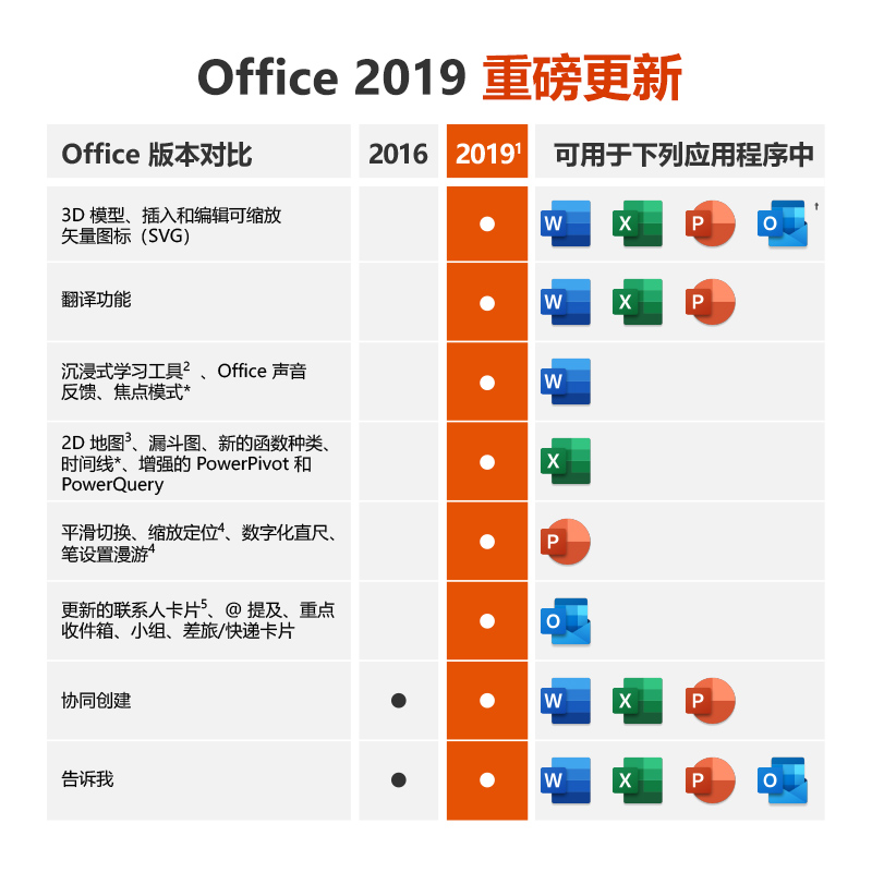 适用于家庭和学生用户的Office 2019,1台 Windows 10 电脑或 Mac一次购买,永久使用, 内含Word,Excel 和 PowerPoint 经典 2019 版本,5GB OneDrive 云存储空间。