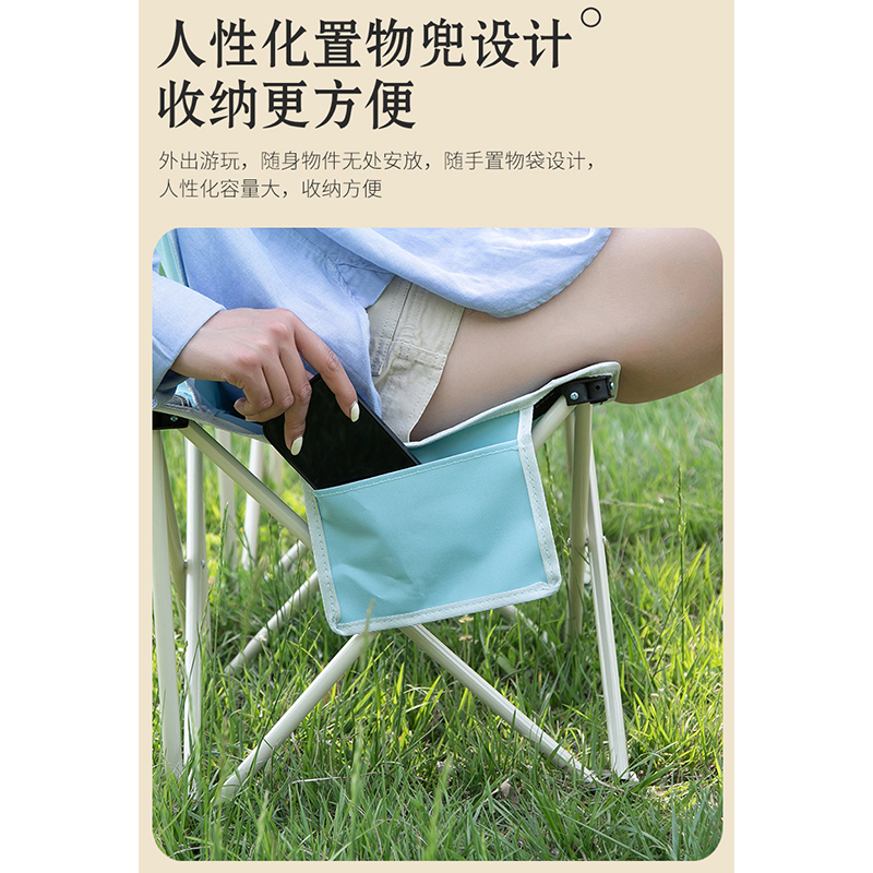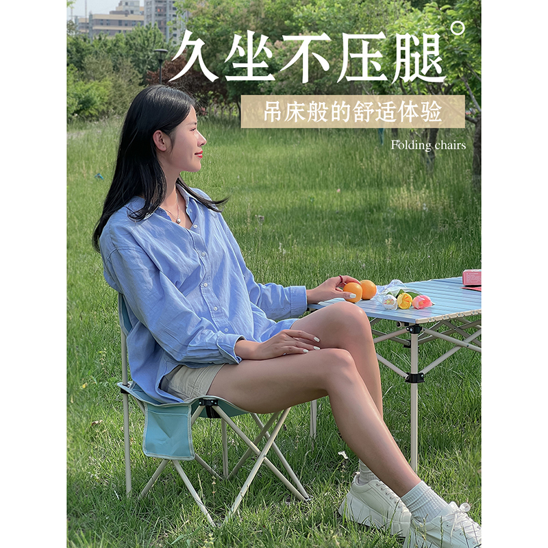 户外便携折叠椅,轻量化·高承重·易携带。结构稳固,颜值担当。休闲好选择,轻松享受户外阳光假日。舒适高靠背,加高靠背,不勒腰背,舒适半躺。久坐不压腿,吊床般的舒适体验。人性化置物兜设计,收纳更方便。加厚牛津布,可承重260斤左右,稳固不摇晃。仅1.0KG左右,易携带,带上折叠椅,朋友约一起,说走就走~。