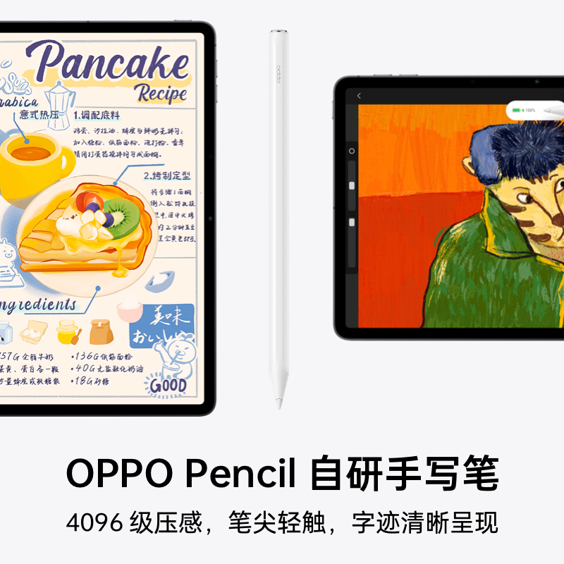 配备了8360mAh容量锂电池,支持33W有线快充,其他方面:前置800万像素,后置1300万像素摄像头,搭载四颗1620超线性扬声器,支持杜比全景声和Hi-Res认证,WiFi6,同时支持OPPO 手写笔,可以进行磁吸充电、收纳。