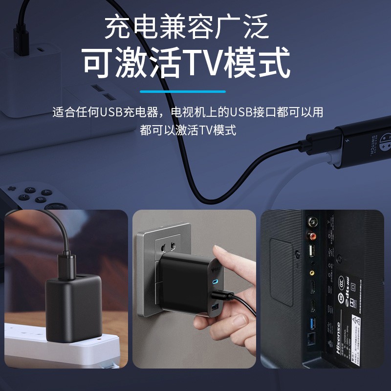 接口镀镍处理,防氧化,耐插拔,接触稳定,耐磨耐用。可激活TV模式,支持Switch充电协议。