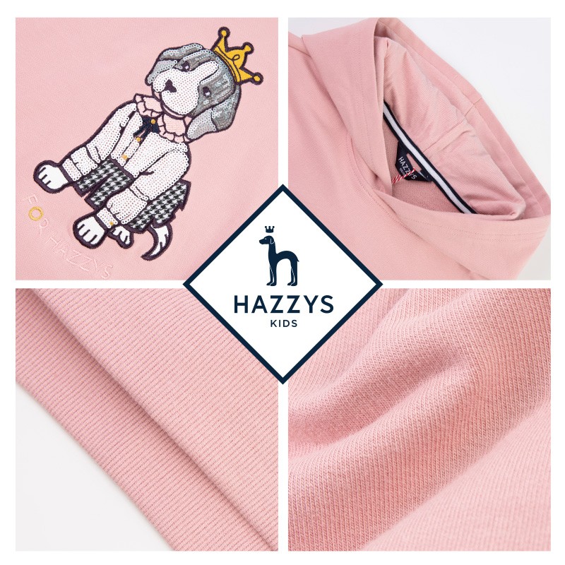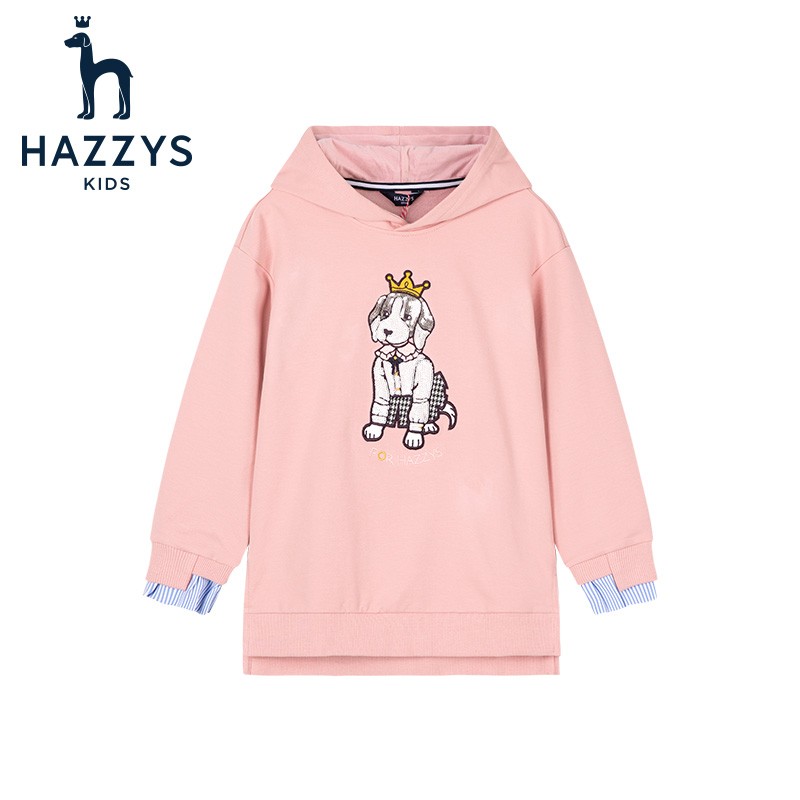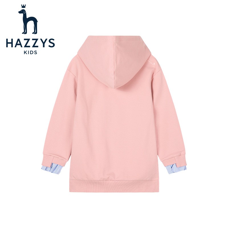 HAZZYS 哈吉斯 女童休闲卫衣,精选舒适的氨纶毛圈,柔软亲肤,富有弹力,不易变形,撞色后领爬条,舒适穿着,耐洗耐磨,不易变型,拼接条纹袖,美观俏皮同时增添层次感。