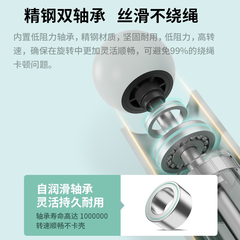 12根耐磨钢丝组合而成,直径约4. 5mm,不易绊脚,寿命久非常适合减肥瘦身、学生考试训练,大人小孩都能用,调节绳长不用剪,绳长约2.8米,身高180以下自由调节。