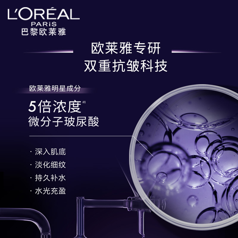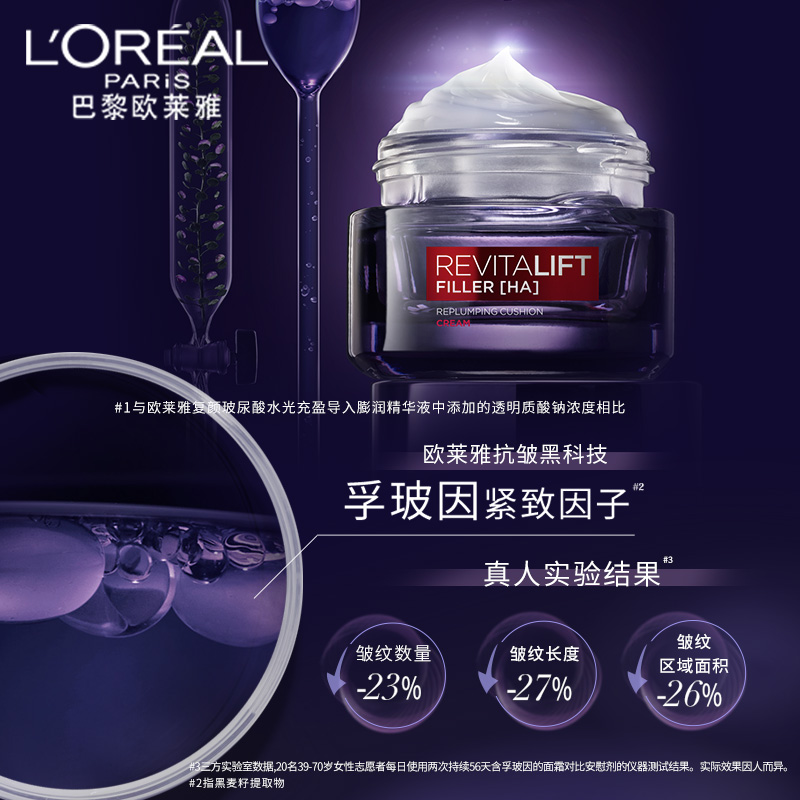 法国欧莱雅集团是世界上最大的化妆品公司之一,创办于1907年,1996年收购了美宝莲。旗下有顶级品牌HR 赫莲娜、GiorgioArmani 乔治阿玛尼,还有一线品牌兰蔻,二线品牌有碧欧泉和科颜氏,大家所熟知的巴黎欧莱雅也来自欧莱雅集团。这款复颜玻尿酸水光充盈导入乳霜,是19年7月的新品,在原有的导入霜基础上新升级,质地更加轻盈柔滑。