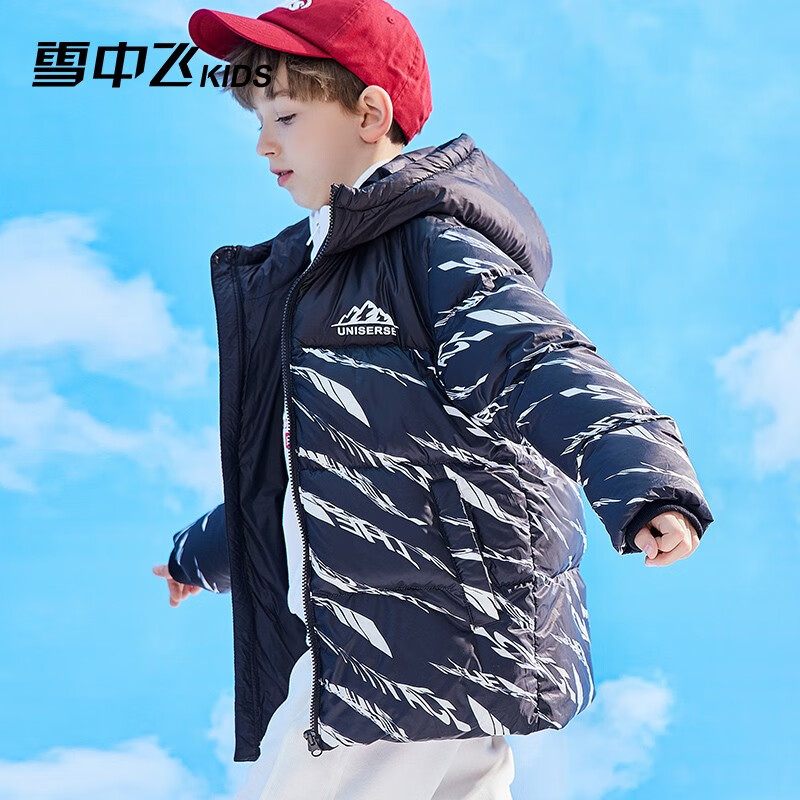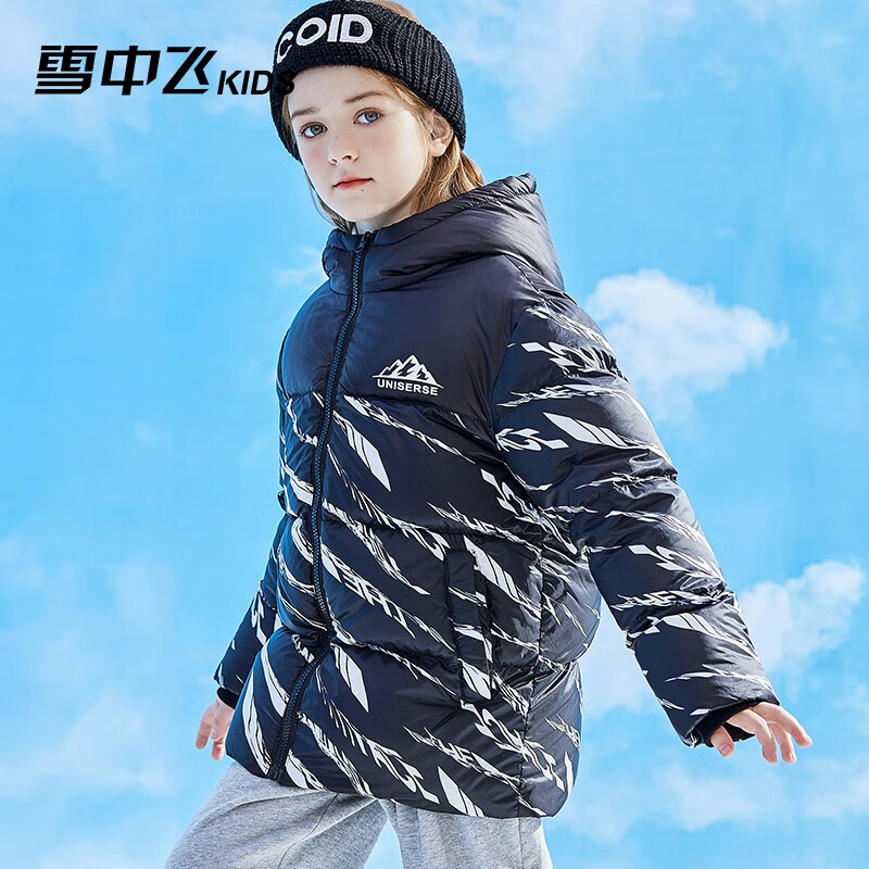 SNOWFLYING 雪中飞 儿童羽绒服,连帽设计,防风保暖,轻盈柔肤面料,甄选鸭绒,三层结构设计,20D锦纶设计,防绒效果更佳。舒适好搭配。