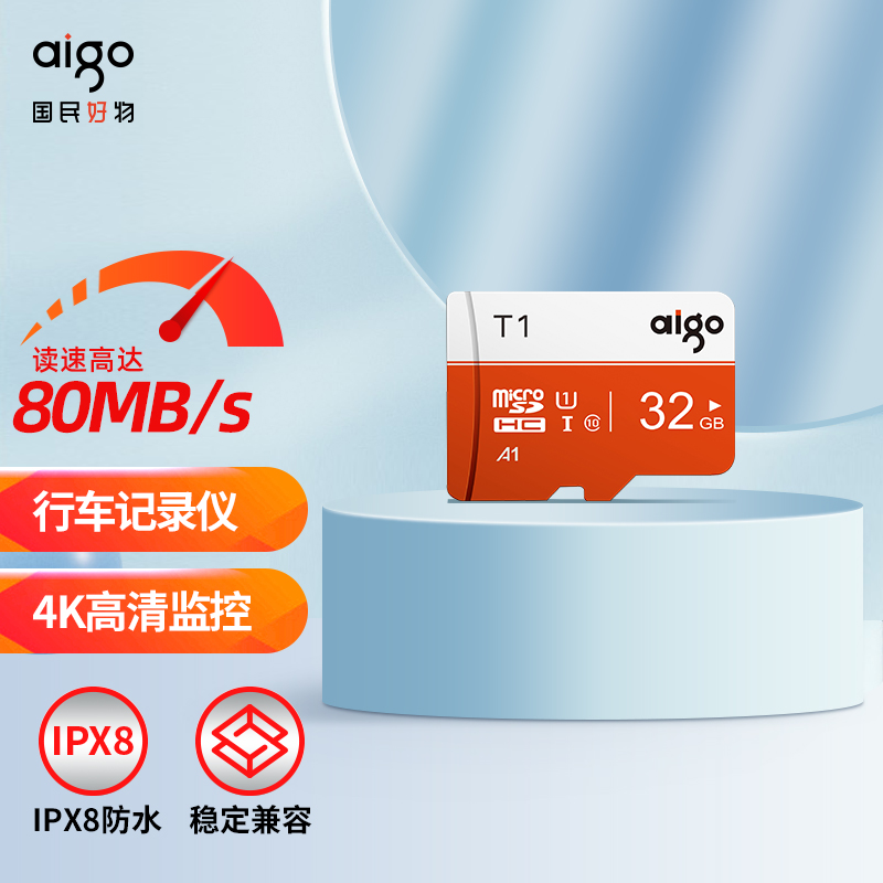 爱国者这款TF卡,有80MB/s读速,UHS-I U1速度等级,支持高清视频。