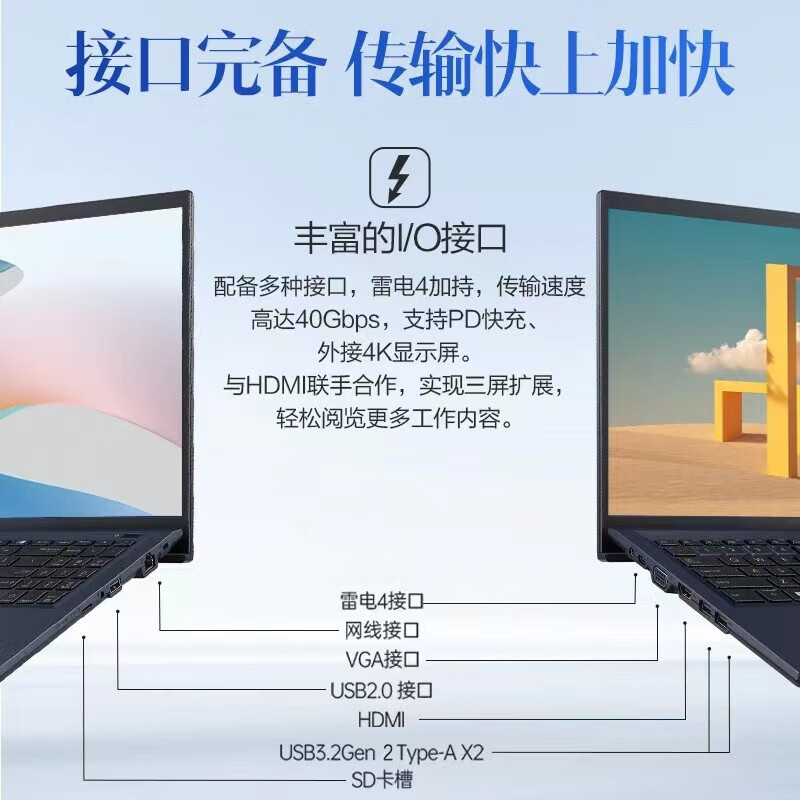 这款笔记本使用i5-1235U处理器,使用16GB DDR4 3200MHz内存,搭配512GB SSD+1TB HDD存储组合,支持扩展至1TB SSD+2TB SSD。使用IPS防眩光屏,拥有1920*1080分辨率,178度广视角,45%NTSC色域,250nits亮度,屏幕支持180°开合,约6.4mm窄边框,屏占比约84%,轻约1.45kg,薄约19.2mm。支持WiFi 6,拥有720P摄像头,支持65W PD快充,内置42Wh电池。
