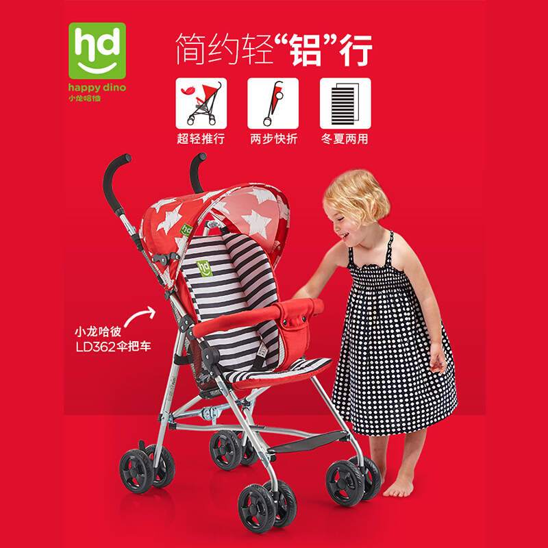 Happydino小龙哈彼是Goodbaby好孩子的二线品牌,质量用料都很厚道,价格也更为亲民。这款Happy Dino 小龙哈彼 LD362 轻便婴儿推车采用高强度铝材,提高车架的使用强度,抗冲击性更坚固耐用。轻两感网状面料,可拆卸棉垫,让宝宝乘坐更加舒适。前轮弹簧避震,多种路段自动过滤震感,不怕颠簸。