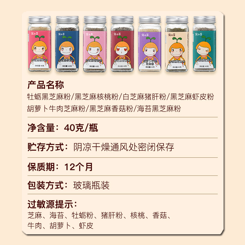 窝小芽 儿童调味料 白芝麻猪肝粉40g/罐,7种口味任选,多元营养满足宝宝成长需求,窝小芽宝宝调味粉营养又提鲜。