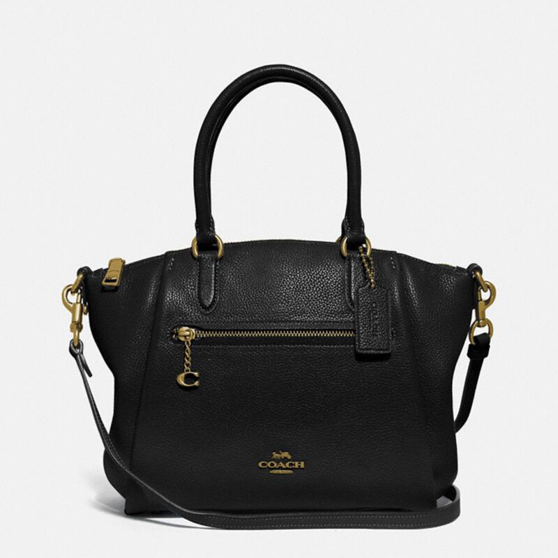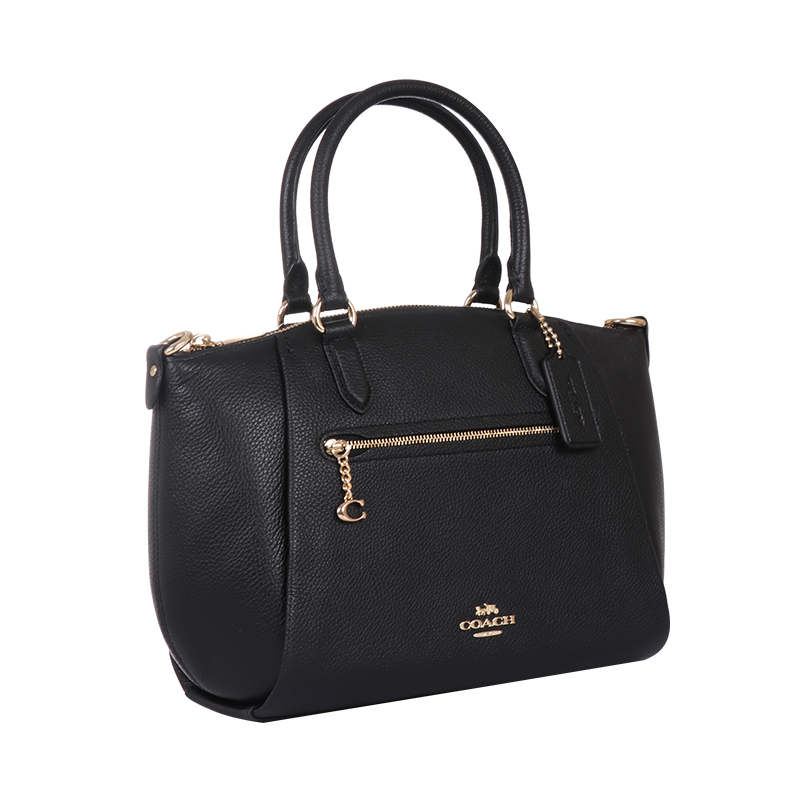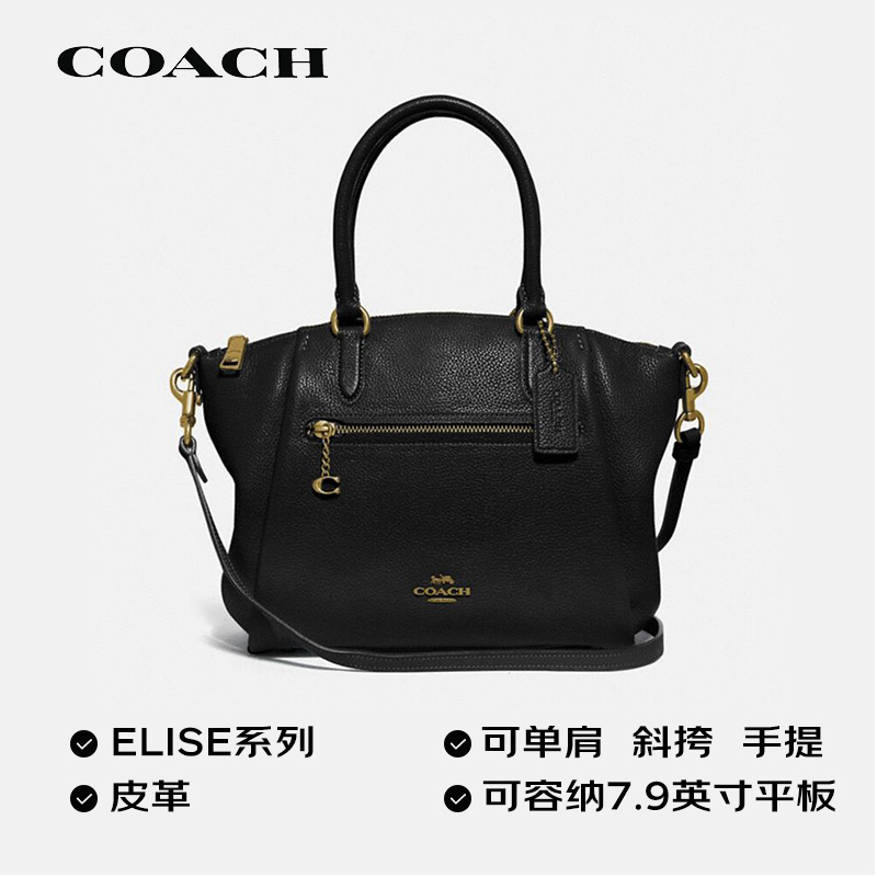COACH 蔻驰 ELISE系列 女士斜挎手提包 79316 选用皮质材质制作,手感柔软,且结实耐磨。纯色外观,配以小挂件,简约又大气。配备手提带与可拆卸、调节肩带,自由选择斜挎等背包方式。内部主空间大,设有拉链袋与按扣袋,搭配外部拉链袋,可以存放手机、钥匙和文件等物品,轻松满足通勤等场合的需求。尺寸:30*8*22cm。