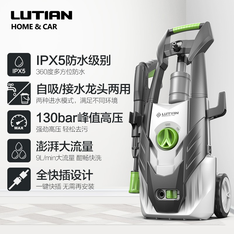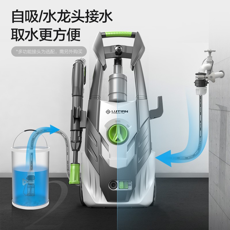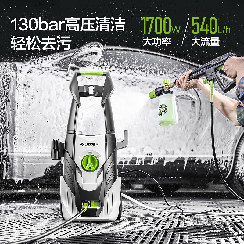绿田波塞冬P4C系列高压洗车机压力可达130bar,流量可达540L/h,可快速有效的完成清洁任务;搭配5米进水管及超长12米出水管,活动范围更大,应用范围更广,使用过程中无需频繁挪动机器;配两种接头,可选择水龙头或自吸取水,100um不锈钢过滤网,可有效过滤水中杂质;搭载绿田自主研发的8系能效电机,由12片金属风叶及优质矽钢片组成,体积小效率高,像心脏一样为机器源源不断的输出强劲动力。