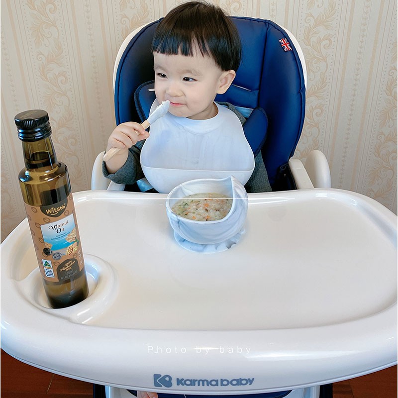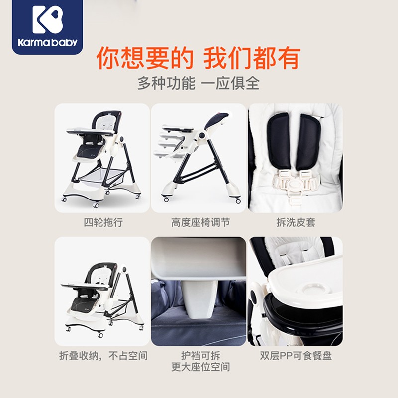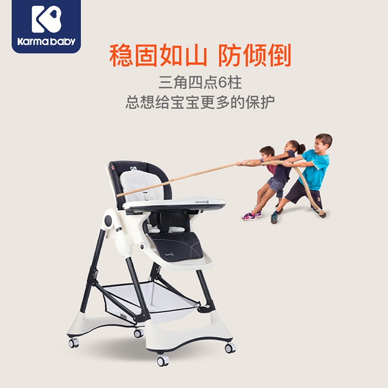 karmababy 宝宝多功能餐椅 地中海蓝,新增四轮拖行功能,更加方便,加大餐椅底脚与地面的接触面积,进一步增强稳定性,防止侧翻和摇晃风险。