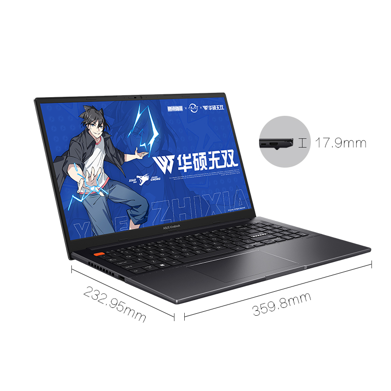 华硕 无双笔记本有幻境银、墨影黑两种配色可供选择,A面精致金属浮雕精刻LOGO,充满个性与辨识个性Enter键斜纹装饰,触感高级。 薄约17.9mm。 配置方面:采用英特尔十二代酷睿i5-12500H处理器,12核心16线程,18MB L3缓存,睿频频率至高可达4.5GHz。45W TDP性能释放。搭配16GB DDR4 3200MHz 双通道内存,512GB PCIe 4.0 固态硬盘。 屏幕方面:搭载一块14英寸2880*1800分辨率,120Hz刷新率,E4发光材质OLED屏幕,拥有600nit亮度,100%DCI-P3广色域,10bit色深,1000000:1高对比度,支持色域切换和像素级补偿技术,通过德国莱茵硬件级低蓝光认证,拥有潘通专业色彩认证,支持DC调光。可180°开合。 其他方面:华硕冰锋散热系统采用 6mm+8mm 双加粗热管和97片LCP材质曲面扇叶辅助散热。5.9"超大触控板和全尺寸、长键程、大尺寸键帽。拥有耳语模式、均衡模式、高能模式,三档性能模式调节。麦克风摄像头方面升级视频语音双重降噪,升级Harman Kardon音响,预装Windows1家庭中文版 正版系统。支持双满速雷电4+WiFi 6,电池容量 70Wh,支持PD快充。