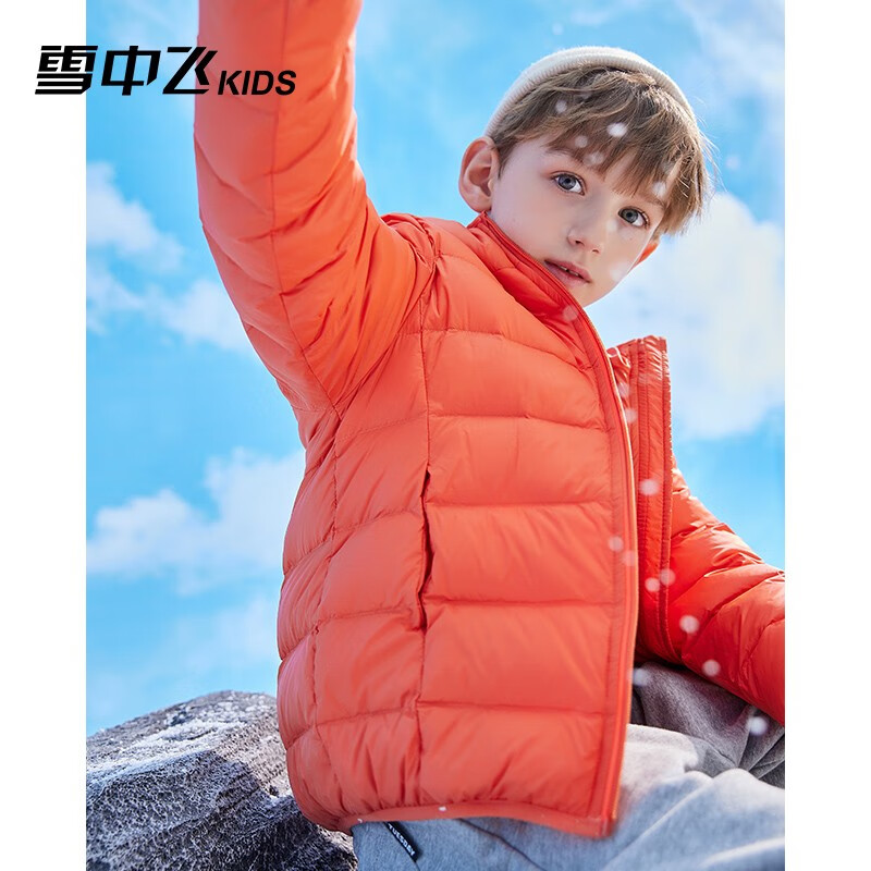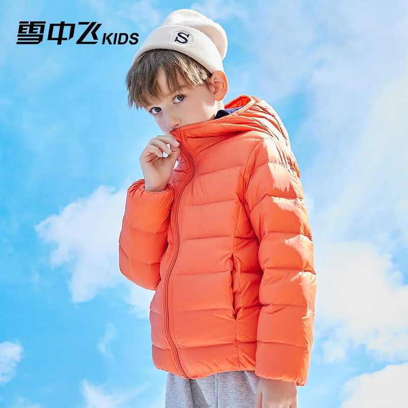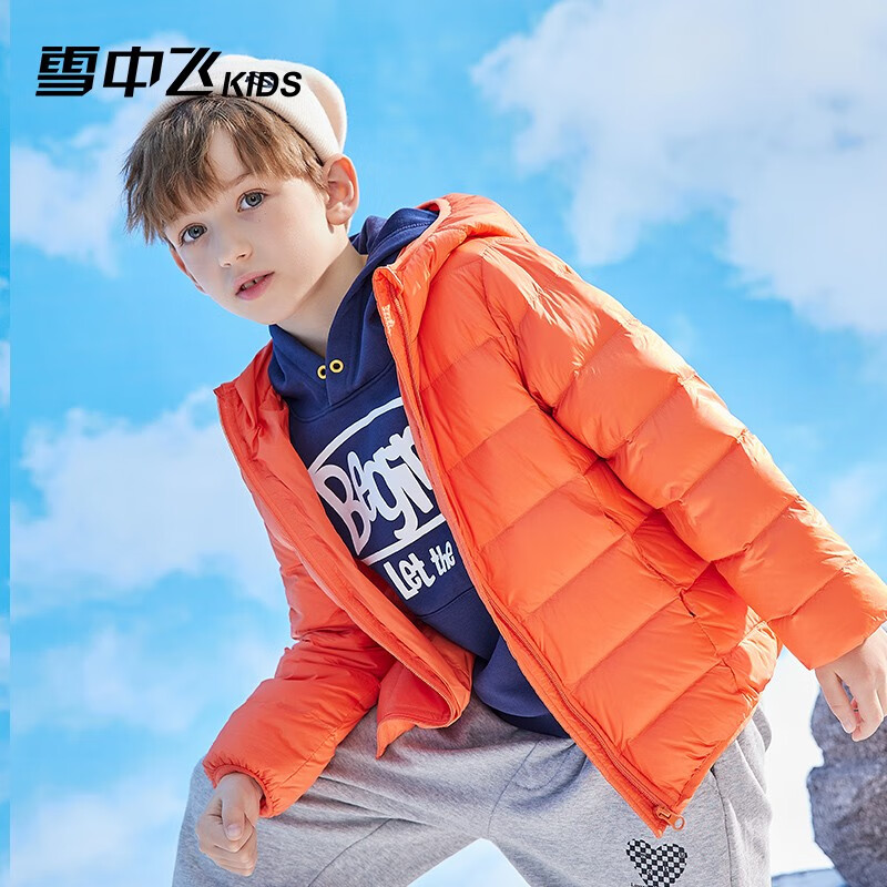 SNOWFLYING 雪中飞 儿童羽绒服,连帽设计,防风保暖,轻盈柔肤面料,甄选鸭绒,三层结构设计,20D锦纶设计,防绒效果更佳。舒适好搭配。