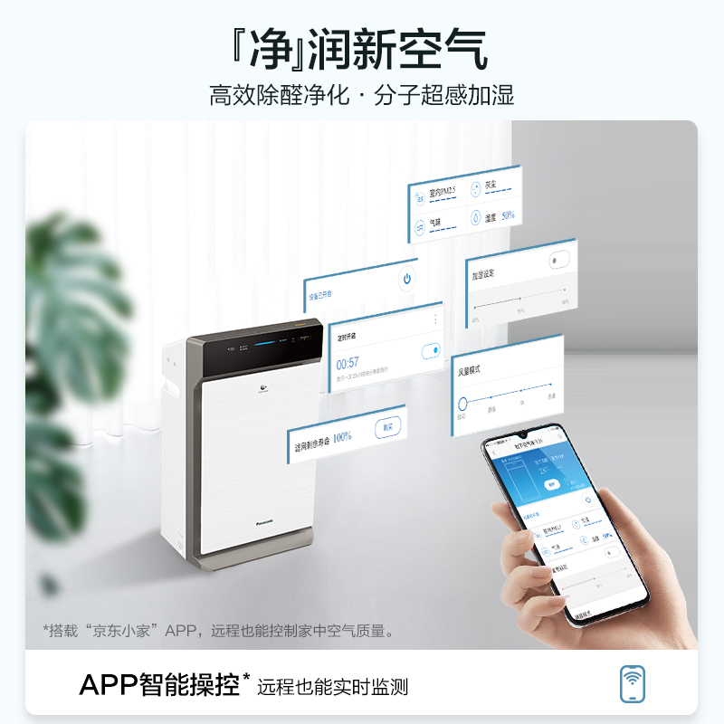 松下 F-73C6VJD-S 空气净化器在空气净化方面,颗粒物CADR值386m3/h,甲醛CADR值191m3/h,颗粒物累计净化量(CCM值)达到新国标的P4标准,甲醛累计净化量(CCM值)达到了新国标最高的F4等级,最大档位噪音值为31分贝,适用面积在27-45平米之间。此外具有多重过滤功能,进行了人性化设计,可开启睡眠模式,可进行智能定时,在滤网需要更换时贴心提醒。