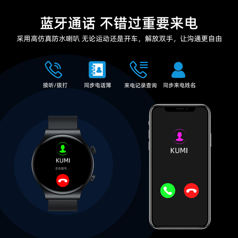 GT5 Pro 智能手表拥有运动精算,蓝牙通话,表盘下载,心率检测以及旋转按钮。配备1.32英寸显示效果非常惊艳的屏幕,分辨率为360*360,色彩饱和度高达80%,对比度1500:1,海量的在线表盘满足多元化审美,可随心搭配,采用高性能低功耗FR5082蓝牙5.0芯片,无论图形处理,还是计算速度比上一代提升50%以上,通话、音乐单独蓝牙3.0芯片处理。