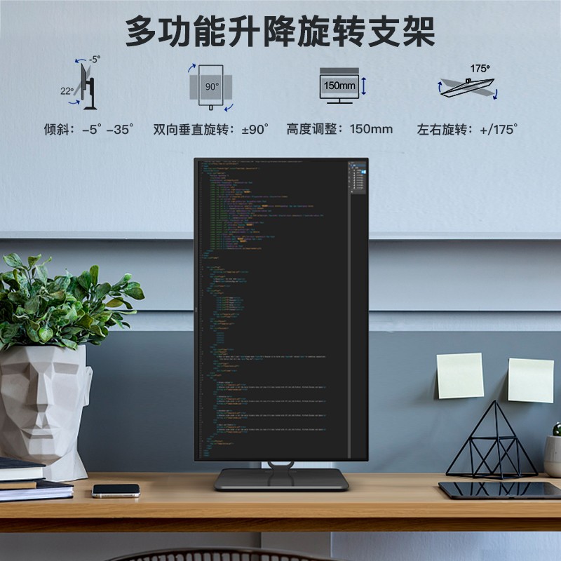 AOC 此款 Q27U2显示器,采用27英寸A+级 LGD AH-IPS面板,分辨率为2K,400cd/㎡亮度支持HDR400认证,91% DCI-P3(115%sRGB)色域,德国莱茵TUV蓝光认证。搭载65W全功能Type-c接口,能够反向为设备充电。提供Audio 音频输出、HDMI 2.0 *2、DP、Type-C接口、USB 3.2 Gen 接口*4以及一个音频接口。
