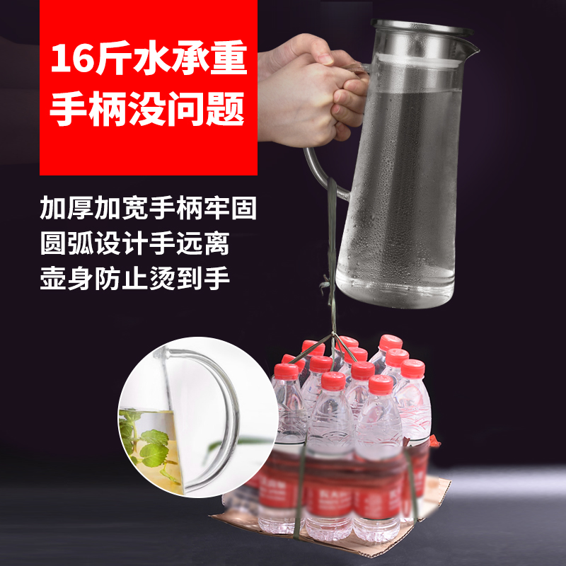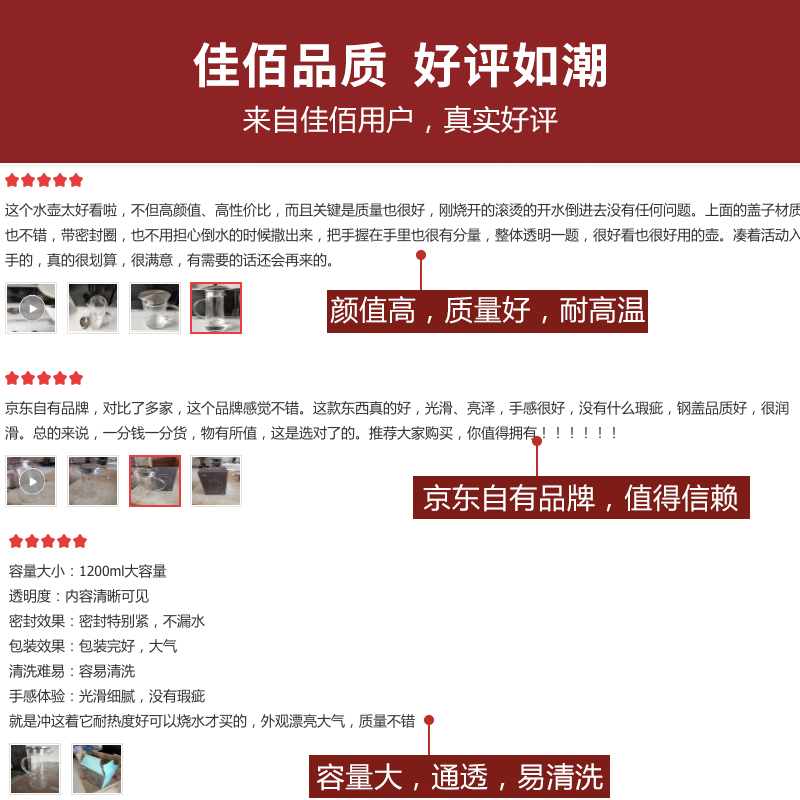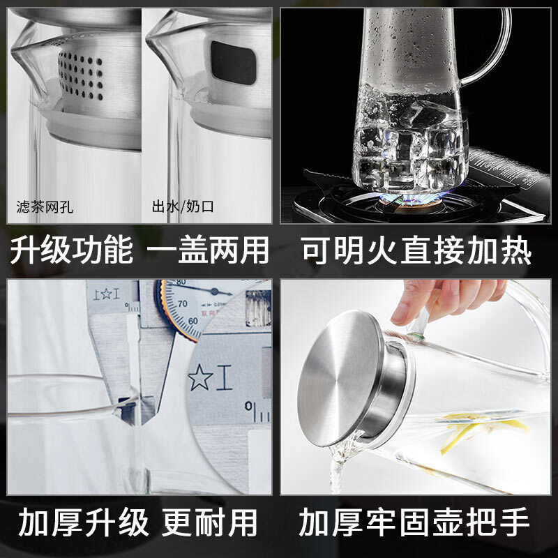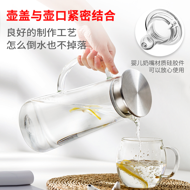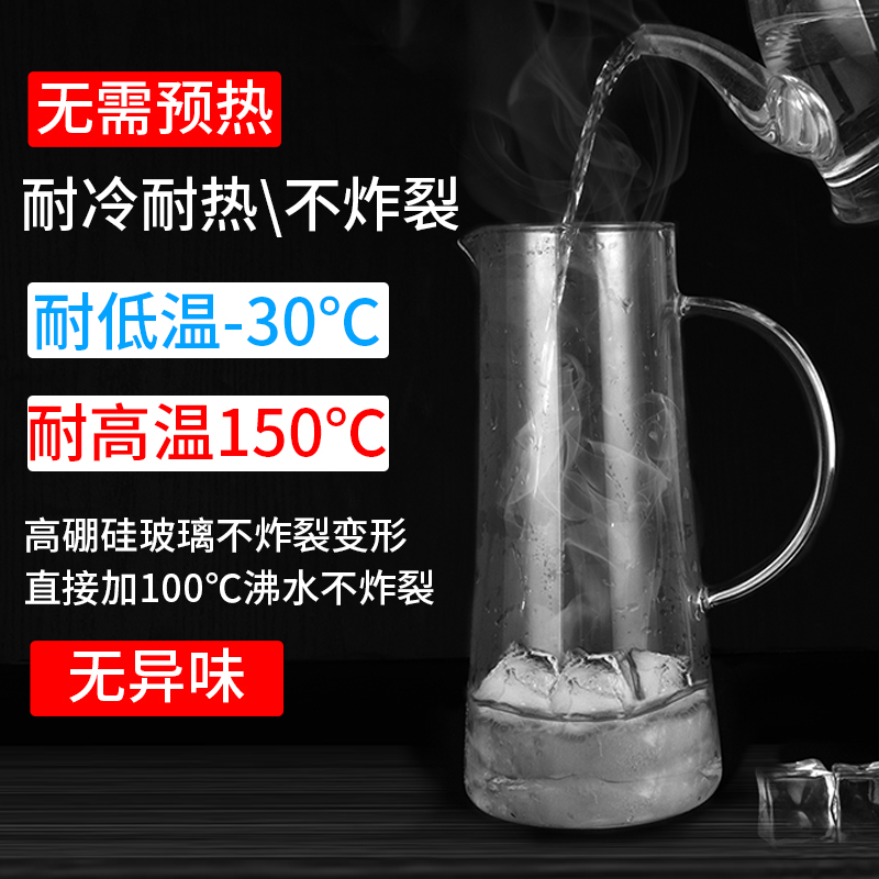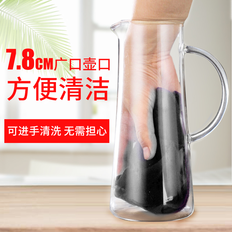Hömmy 佳佰 玻璃冷水壶,采用高硼硅玻璃材质,高通透,高稳定性,可明火直烧,耐冷耐热,可承受-30℃到150℃温度变化,使用更加安全放心;传统手工吹制法,玻璃表面光滑,无杂质磨痕;加厚牢固把手,安全可靠;大口径设计,方便清洗;微波炉、电陶炉,煤气灶通通适用;1200ml容量,足够日常使用~