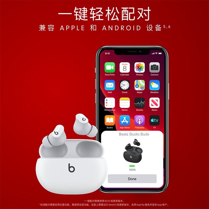 真无线降噪Beats Studio Buds专为音乐而生,采用定制声学平台设计,小巧的入耳式外形进发出强劲均衡的音效,拥有双音室外壳搭配专有的双元件振膜驱动单元,可带来清晰的音色和出色的立体声分离。