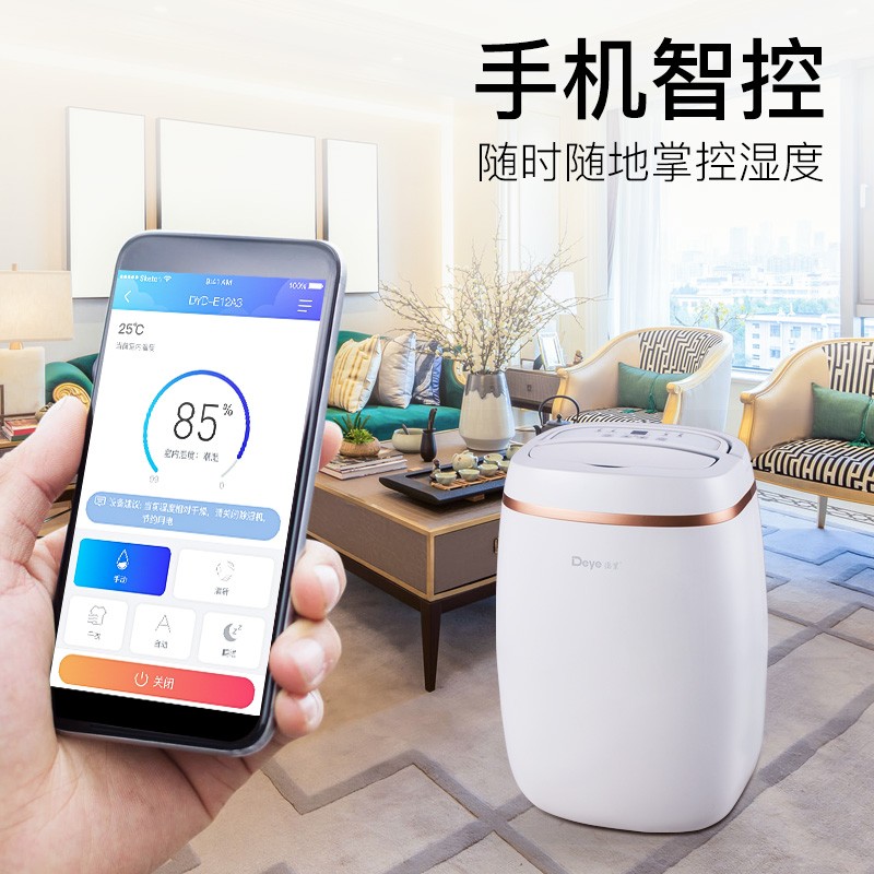 德业(Deye )这款型号为DYD-E12A3的除湿机,搭载有高效转子能压缩机,日均除湿量为12升,最大风量100立方米/小时,最大支持25㎡空间除湿。可根据舒适湿度自动调节,也支持手动调节。2.5L水箱容量,支持水箱以及水管的双重排水方式。触控按键,功率为145w,正常运行声噪维持在38dB,支持24小时定时,水满提示、水满停机以及自动除霜。