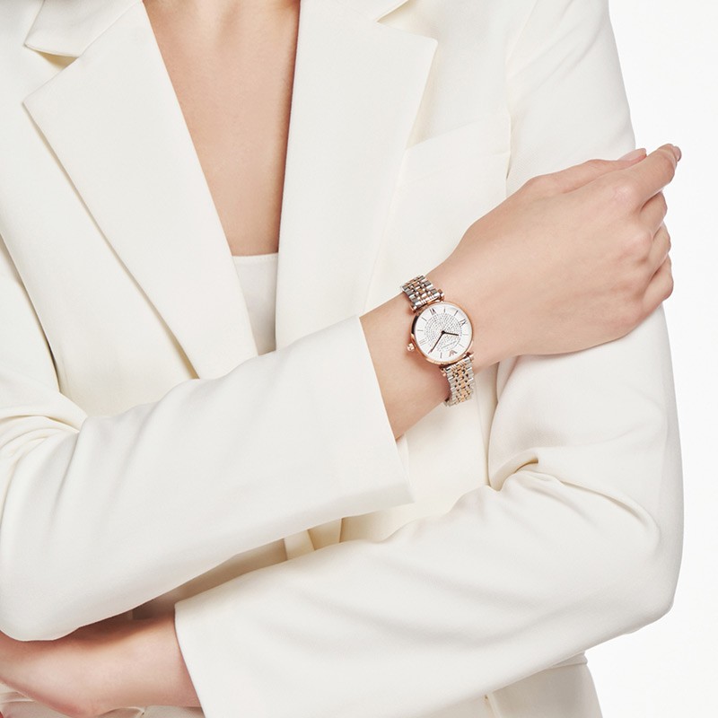 EMPORIO ARMANI是意大利著名品牌GIORGIO ARMANI的副线品牌,设计前卫时尚,主打年轻用户群眼镜设计偏向中性,做工考究。这款EMPORIO ARMANI AR1926 女士时装腕表,超薄款型搭配蝴蝶双按扣设计,款式简约优美。经典指针式表盘,中部奥地利水晶铺满点缀,12点钟处有品牌LOGO。石英机芯,矿物质玻璃表镜,表径32mm,厚度8mm,适合大多数女士佩戴,防水系数30米。