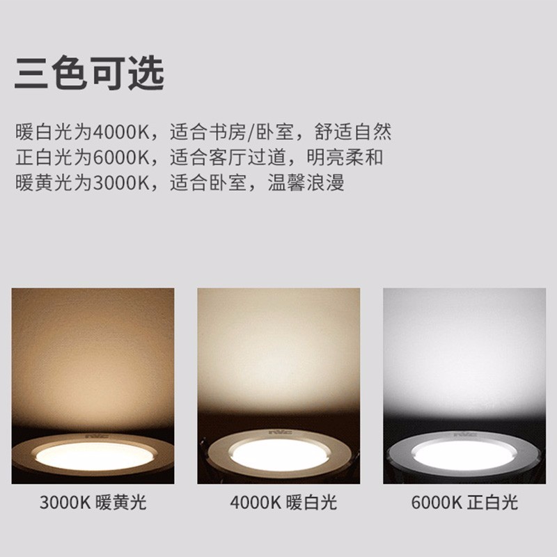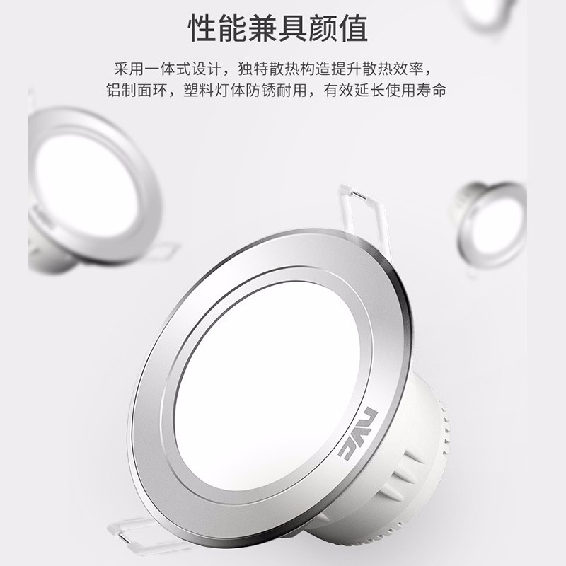 雷士此款LED嵌入式筒灯功率为3W,开孔7.0-8.5cm,简约百搭,经济实惠。一体化设计美观实用。采用高效能LED芯片,节能省电。灯体可以高效散热,有效延长使用寿命。