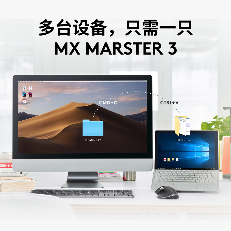 MX Master 3 沿用了 4000 DPI 的传感器,支持蓝牙或罗技 Unifying USB 接收器,可在三台设备之间快速切换。此外,罗技 MX Master 3 的充电接口,从 micro-USB 换成了 USB Type-C ,快速充满电量后,可拥有多达70天的使用时间。
