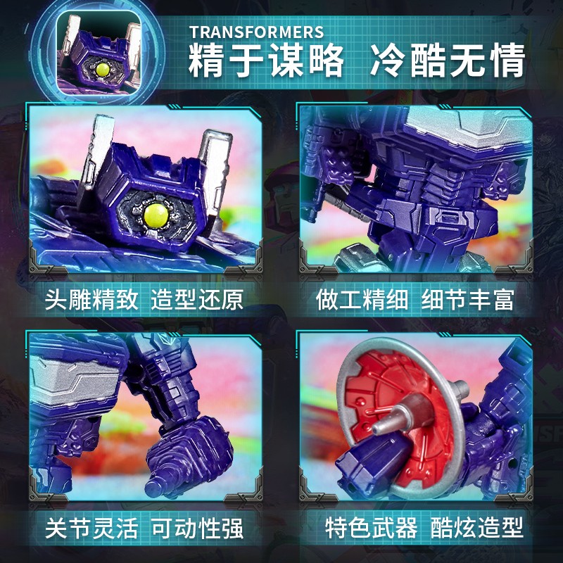 震荡波是《变形金刚》系列的虚拟角色之一,他是力量强大,令人敬畏的狂派战士之一,也是少数几个和威震天单打独斗还能活着回来的家伙之一,威震天也对他做出极高评价,忠心耿耿的他是个优秀的变形金刚。这款核心级震荡波还原了动画中的形象,细节刻画精致,精涂版喷漆及个性人物造型,展现人物特性。