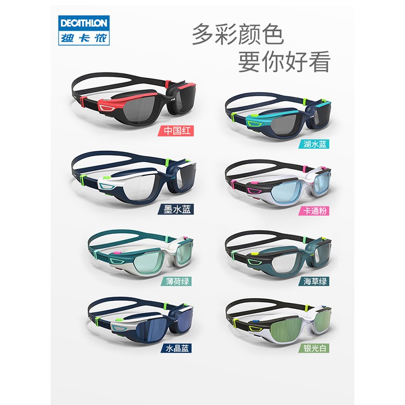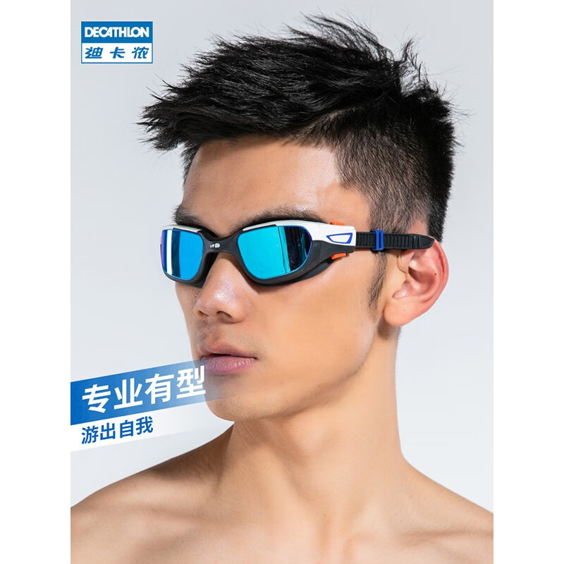 DECATHLON 迪卡侬 8491442 中性款泳镜,采用聚碳酸酯纤维/热塑性聚乙烯/聚丙烯/硅胶面料,镀膜款镜片可以有效抗强光,灰度款镜片可抵抗部分强光。