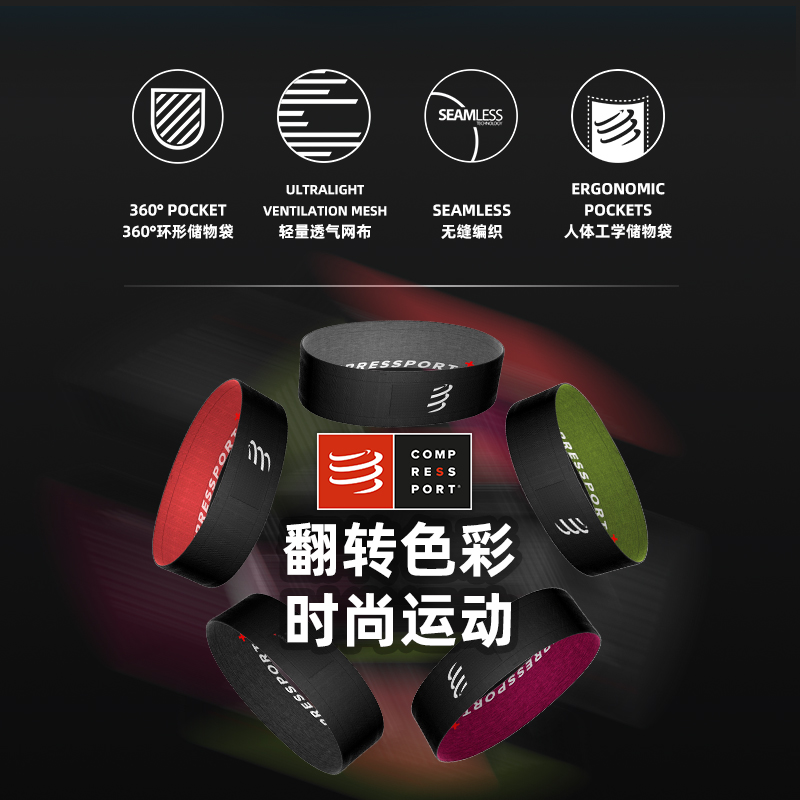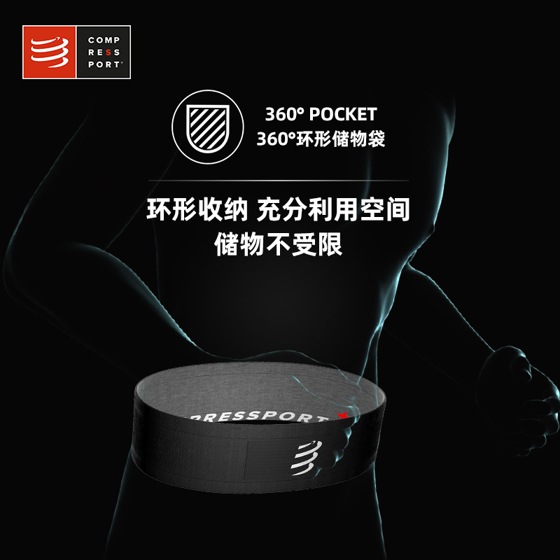 COMPRESSPORT CS-FBELT CU00012B 中性户外收纳腰包,合理的360度,环绕式结构设计,储存空间更合理,拿取更便捷,运动时避免腰帯移位,使你更专注于您的脚步。