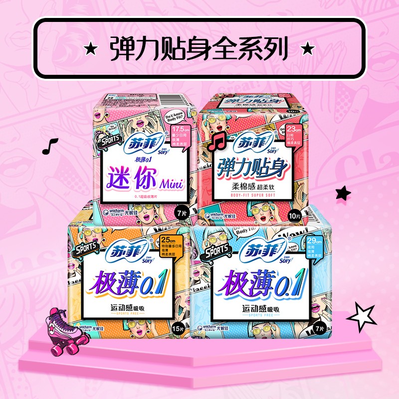 苏菲卫生巾,于日本开发,是尤妮佳公司针对现代女性推出的卫生巾品牌,提供优质的卫生巾、护垫产品,适应现代女性需求的多样化,高端化。苏菲的这款卫生巾内含超吸收薄片,薄至0.1cm,柔软触感,安心满满,23cm的长度,适合日常使用。