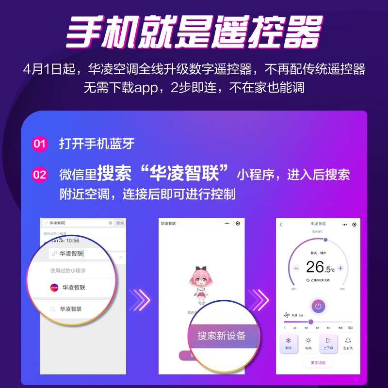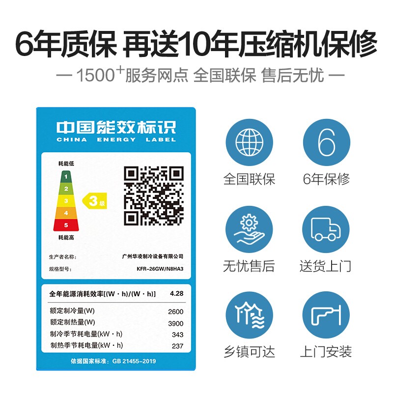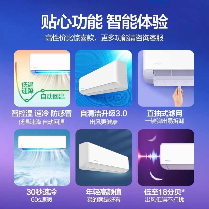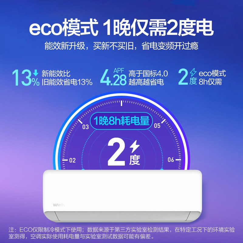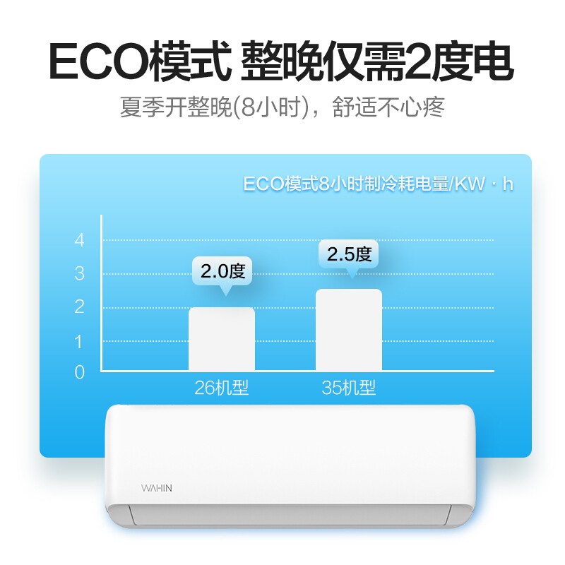 WAHIN 华凌属于美的集团下的子品牌,这款型号为KFR-26GW/N8HA3 的壁挂式空调,制冷匹数1匹,其搭载填充有R32冷媒,采用变频压缩机,制冷量2600W,制热量3900W,能效比达到了4.28,国标新三级能效。循环风量620m3/h,支持上下/左右扫风,可满足11-17㎡平米居室冷暖需求。具备自清洁功能以及一键式弹出滤网,让后续清理变的简单方便。支持APP远程控制。
