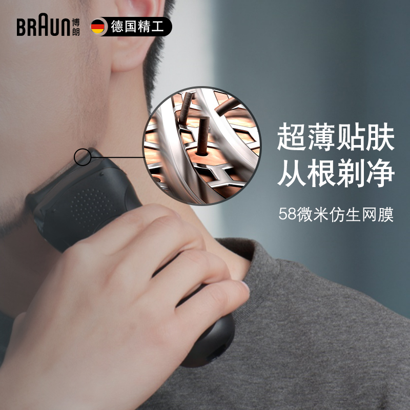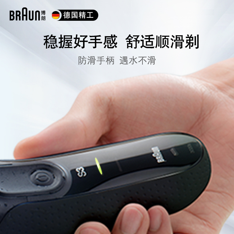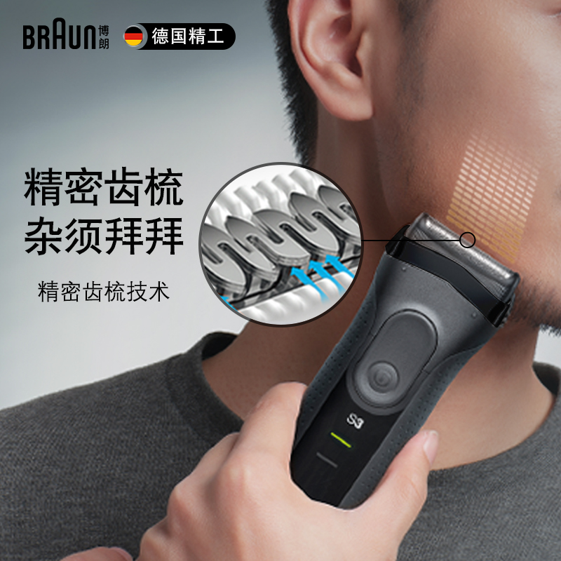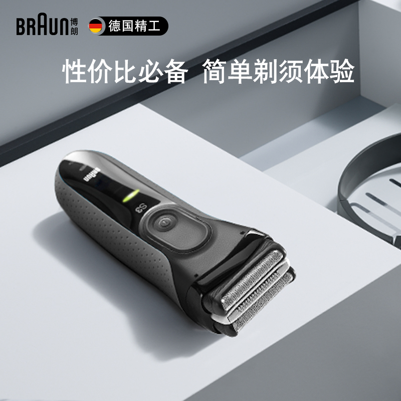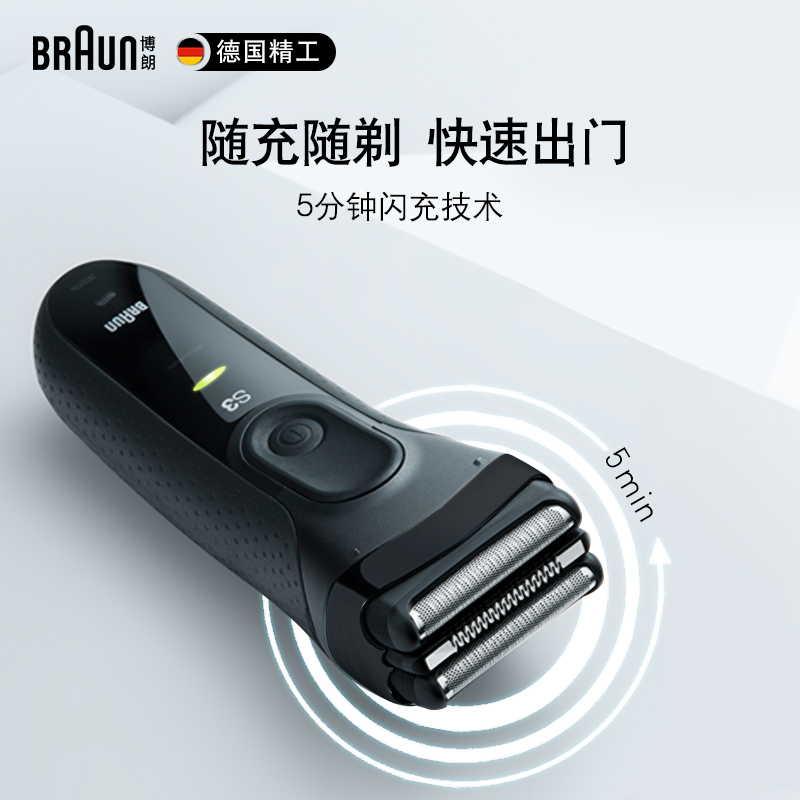 博朗3000S是博朗旗下的性价比之王,采用德国制造的刀头和日本制造的马达,动力强劲,入门的价格享受进阶的往复式配置。三刀独立浮动剃须系统贴和皮肤,结合精密齿梳技术,可以更好应对方向杂乱的胡须,减少回刮,效率更高。5分钟快充即可剃须一次。1小时可充满,能够使用45分钟。并带有鬓角修剪器,可以全身水洗。