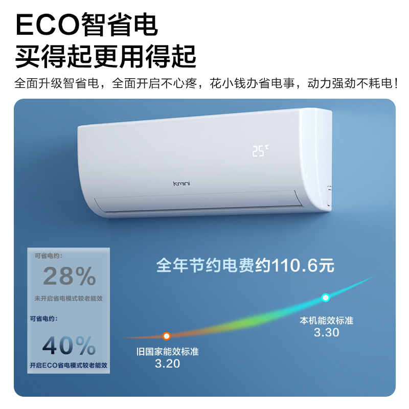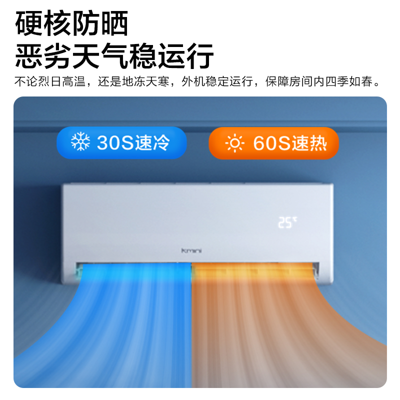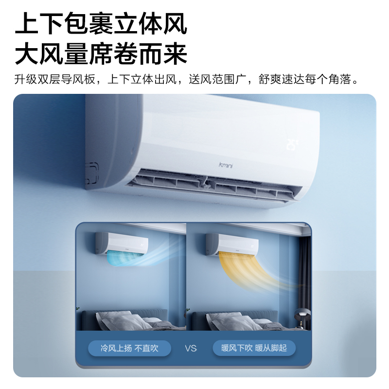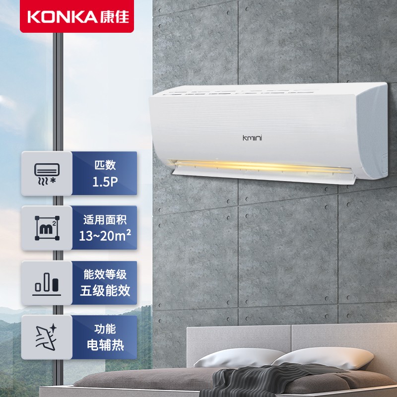 康佳(KONKA)这款型号为KFR-35GW/9M5的壁挂式空调,采用品牌压缩机,纯铜管连接提高空调性能,冷热速达,无需多等。空调双层导风板,上下立体出风,送风范围广, 强力模式大风量,温暖的风迅速到达各个角落。优化风道,轻音运行噪音不扰眠,睡眠模式, 每一晚舒适温度静守护,一觉睡到自然醒。