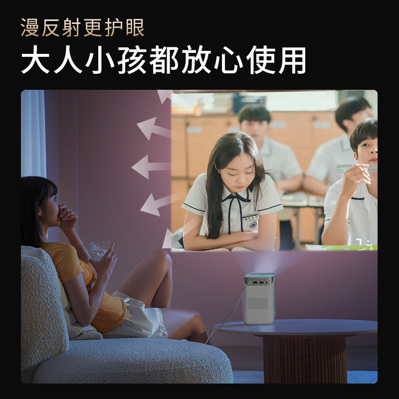 人性化“萤火虫”设计,夜光遥控不用找,航空级铝镁金属结构,结构扎实耐用,辅助散热,采用和DLP一样的封闭式系统设计,使用寿命长达30000小时。比其他开放式LCD投影仪寿命长10倍,液晶屏不会有积灰问题。蓝宝石镜片成像清晰不虚焦,320ANSI自然光流明,真高清不抖动。HDR1O硬解码,还原每帧画面更多的明音细节,连小毛发都不放过。我们的金耳朵大师为追求丰富的音效体验,在音腔里加入了低音金属振膜,搭配2个3全频段钕磁扬声单元,实现大师级高中低三频音感。HDMI+USB,可以匹配 SWITCH,PS5,XBOX等游戏机,同时支持KTV设备,音响设备等。
